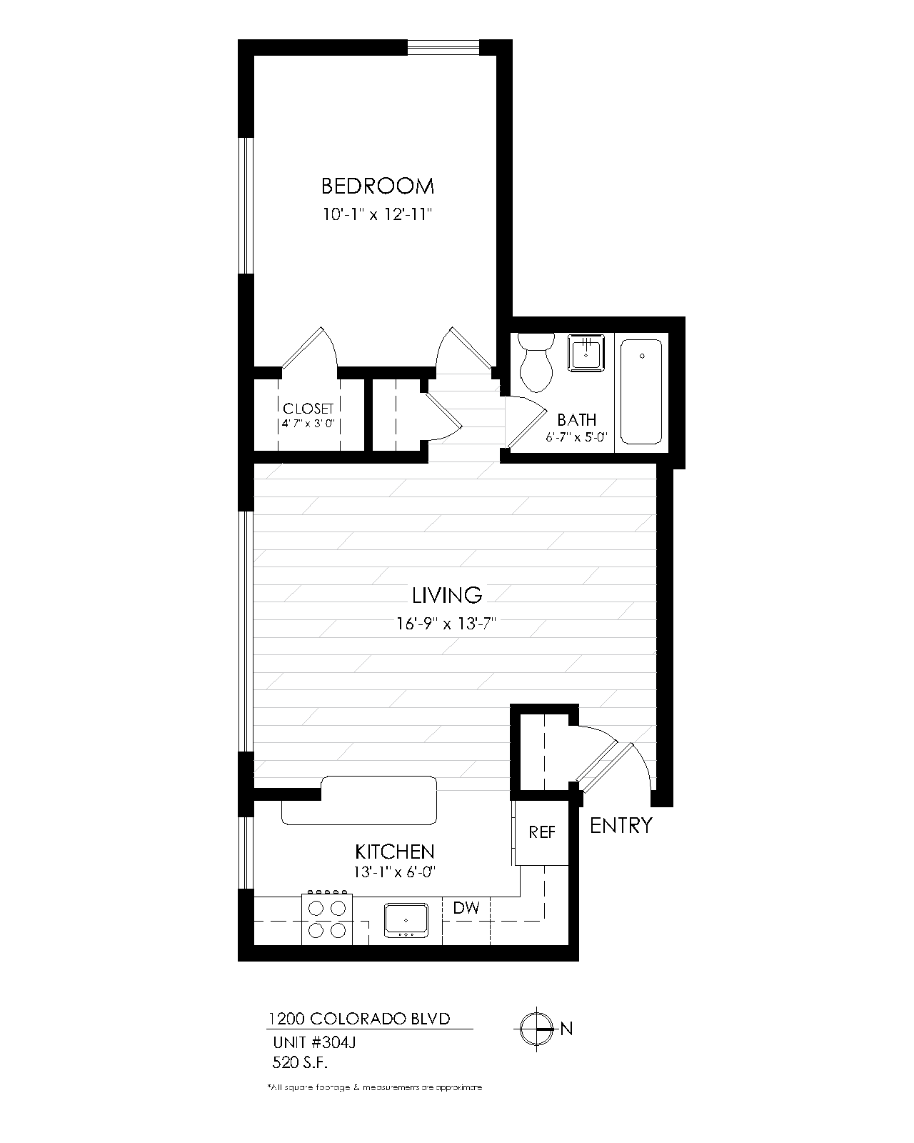 1 Bath 665 sqft.