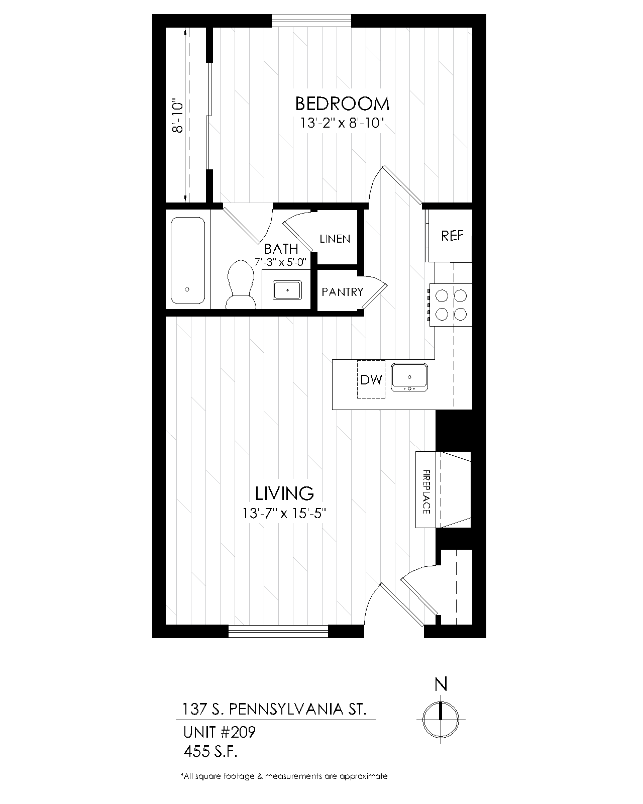 1 Bath 455 sqft.