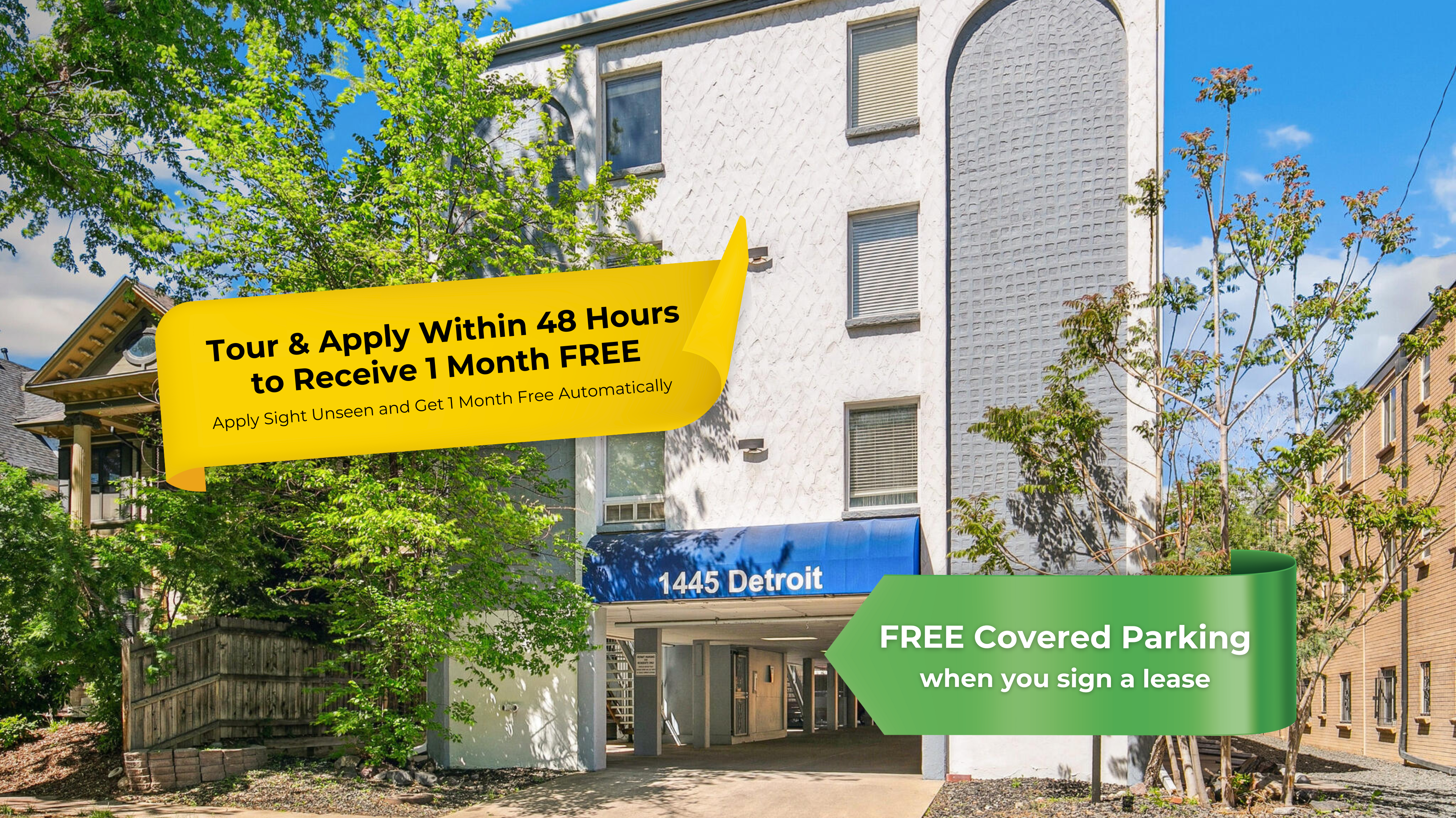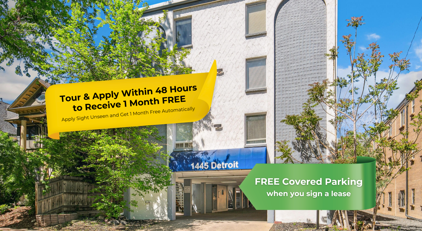 Discover 1445 Detroit, a pet-friendly mid-century gem built in 1968 in the heart of Denver's charming Congress Park neighborhood. It offers spacious 1-bedroom and 2-bedroom apartments with air conditioning*, wood-style flooring*, plush carpet in the bedrooms*, and ceiling fans in both living and bedrooms* for year-round comfort. The location is just steps from tree-lined streets, boutique shops, cafes, and beautiful parks. Enjoy the convenience of covered parking and a welcoming community vibe. *Select units. Contact us to confirm. Schedule your tour today and make 1445 Detroit your new home in Congress Park!2023-BFN-0002385