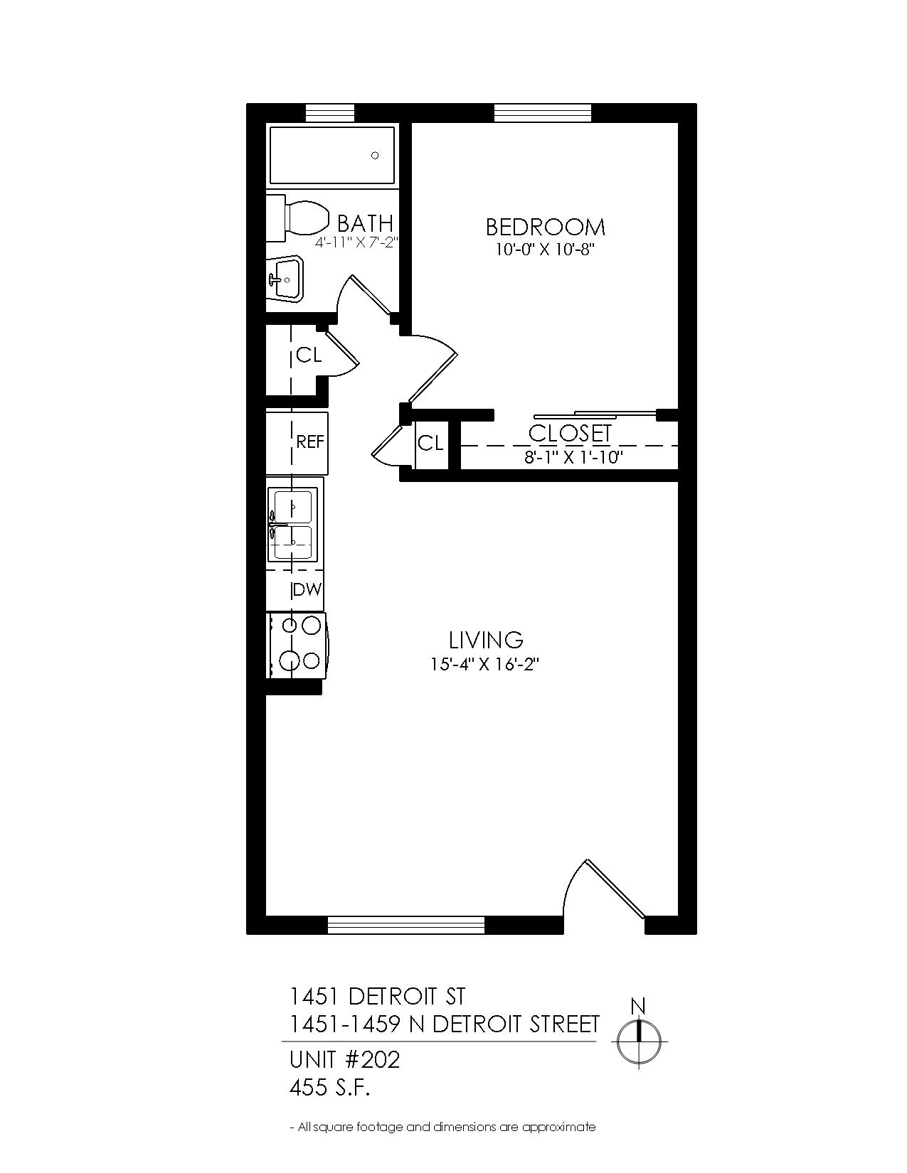 1 Bath 455 sqft.