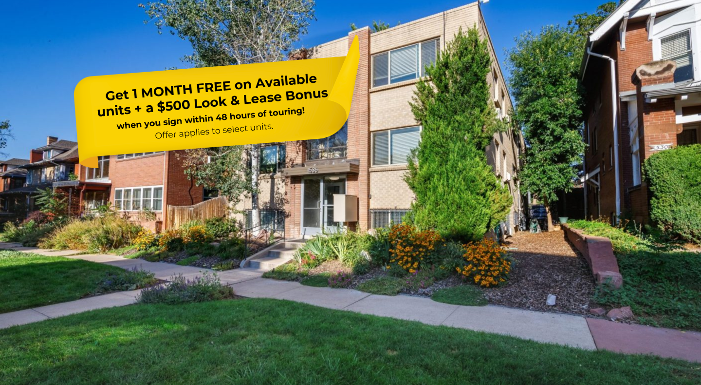 If you're looking for a building situated right in the heart of City Park West, and that encapsulates the feel of Denver, look no further than 1536 Vine! Close to mulitple different restaurants, bars and cafes, as well as the popular Denver Tattered Cover Bookstore, you'll never be bored. Take a walk to City Park, or Cheesman Park, either way, 1536 Vine is located right between these two well-loved Denver parks! These studio and one-bedroom pet-friendly apartments with in-unit laundry*. The building also has controlled entry, FREE on-site laundry, and reserved parking** providing both comfort and covenience!