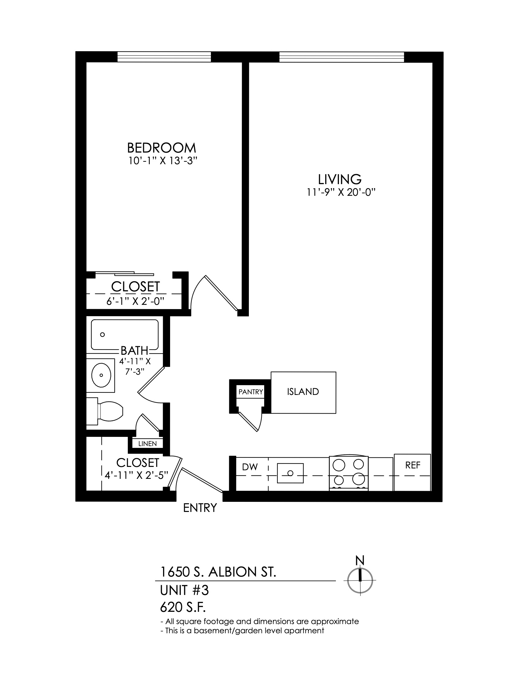 1 Bath 622 sqft.