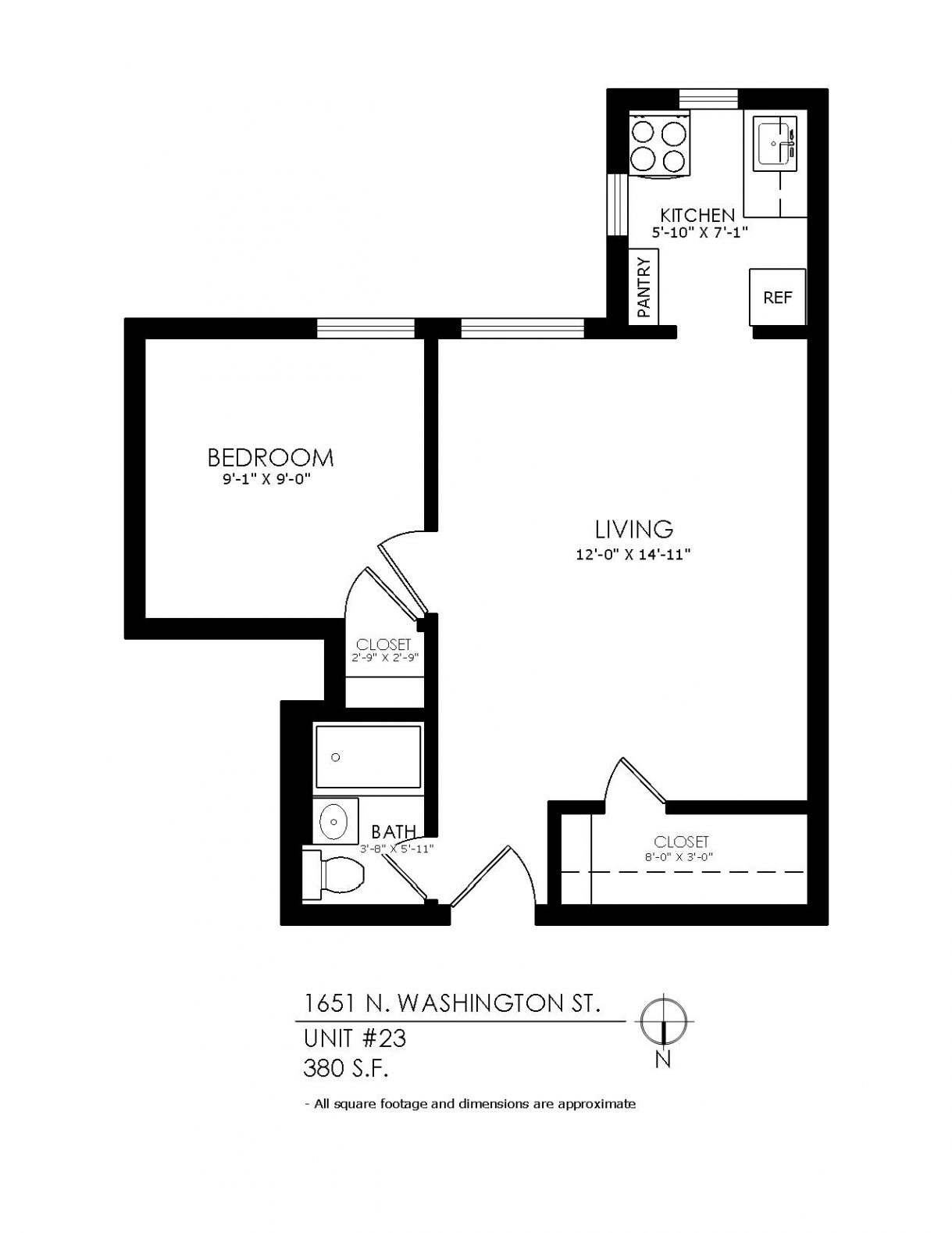 1 Bath 380 sqft.