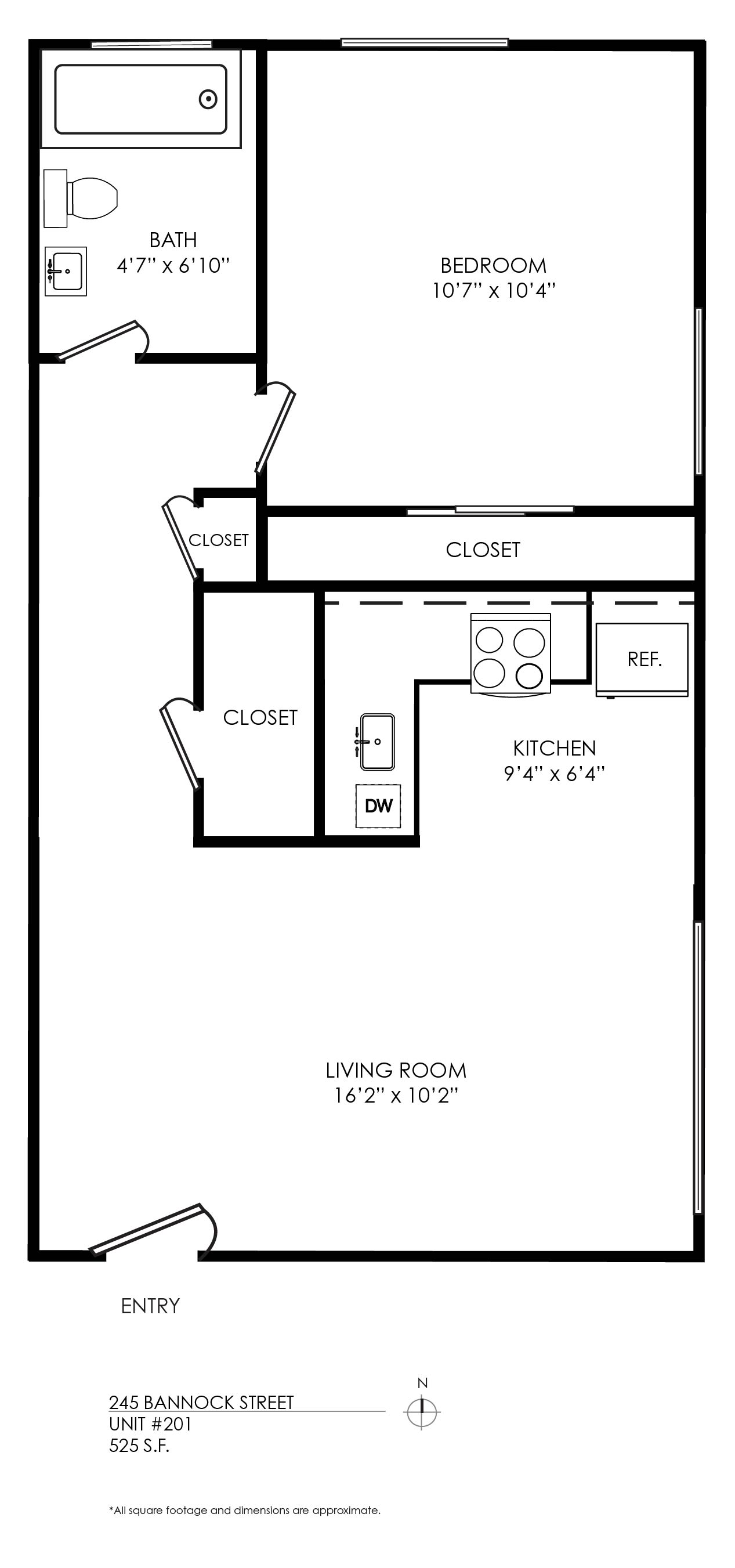 1 Bath 695 sqft.