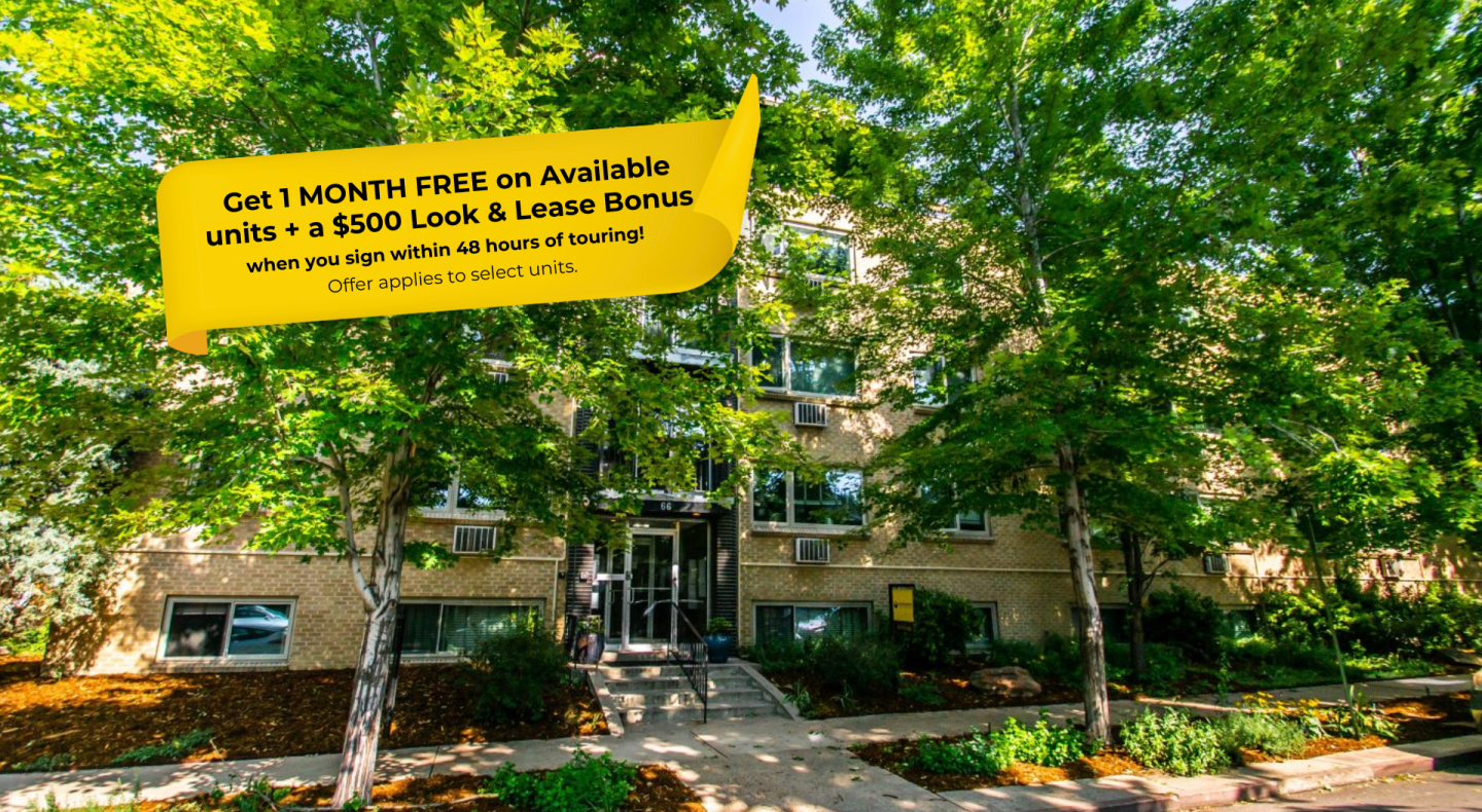 Grab a lounger on one of the neighborhood's sweetest rooftop decks with a community grill at 66 Pearl. Take in the views of downtown, the mountains, and down to the dazzling perennial garden that lines the walk in front of this vintage building. These spacious one, two, and three-bedroom apartments - complete with hardwood floors*, air-conditioning*, walk-in closets*, and custom shelving* - are close to a bus stop and walking, cycling or scootering distance to Cherry Creek, Wash Park, SoBo, and downtown. Grab your morning fuel at Rosebud Cafe just up the street, go for an afternoon run at Hungarian Freedom Park, or spend free time on South Broadway's strip for dining, shopping, and entertainment! This building also features on-site laundry, an elevator, community WiFi, new windows, and reserved parking** making 66 Pearl a great place to be in the Washington Park neighborhood!