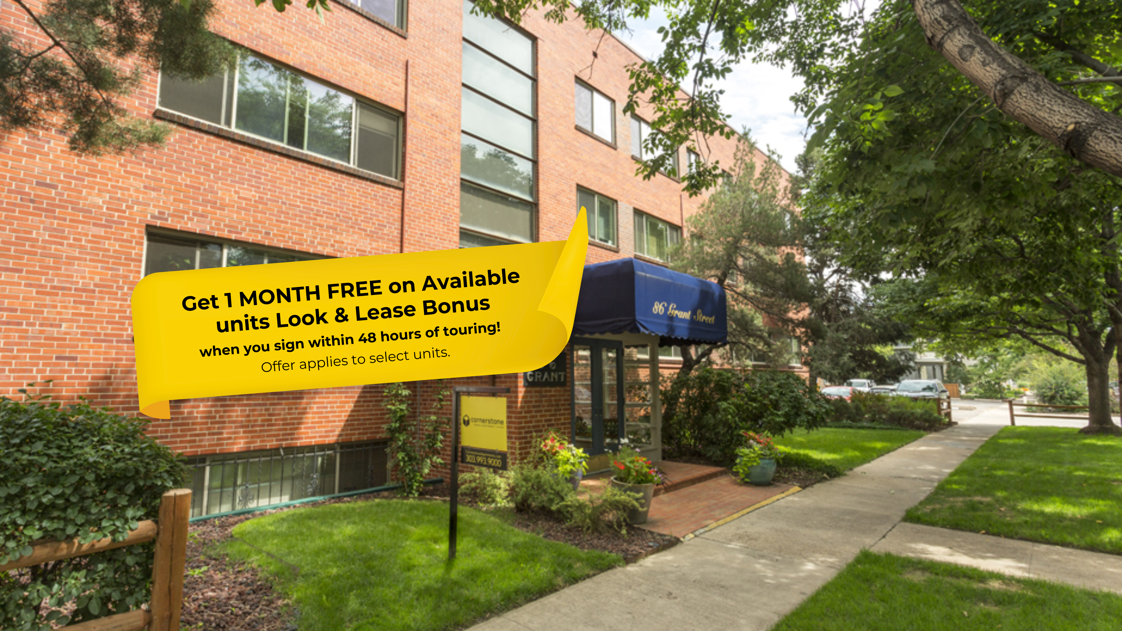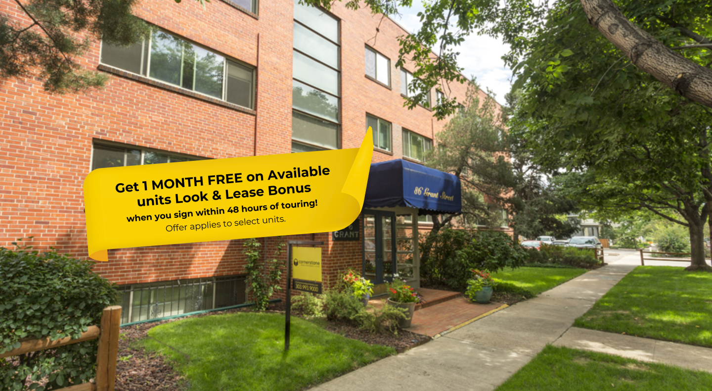 With charming curb appeal, 86 Grant is just blocks from the SoBo scene. Walk west to the Mayan Theatre and the shops lining Broadway, or hop on the highway for a quick getaway to downtown or the mountains. Featuring one or two-bedroom apartments with expansive windows that let in tons of natural light, a breakfast bar for casual eating*, gas ranges, hardwood or vinyl plank floors in select units, and a central location, you and your cat will love to come home to your apartment at 86 Grant! This building also features exterior bike storage, additional storage for residents**, reserved parking**, new windows, controlled entry, and on-site coinless laundry.
