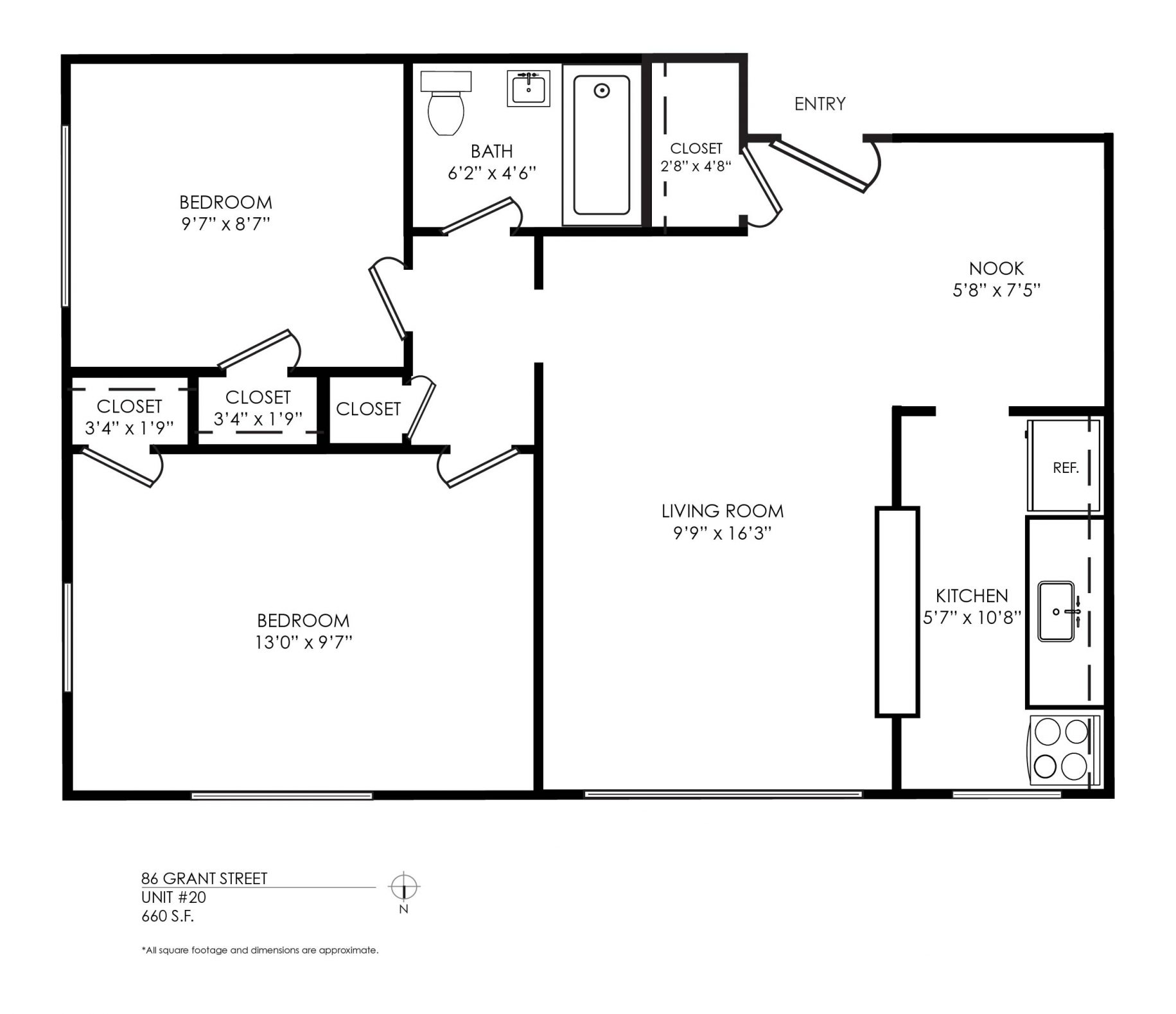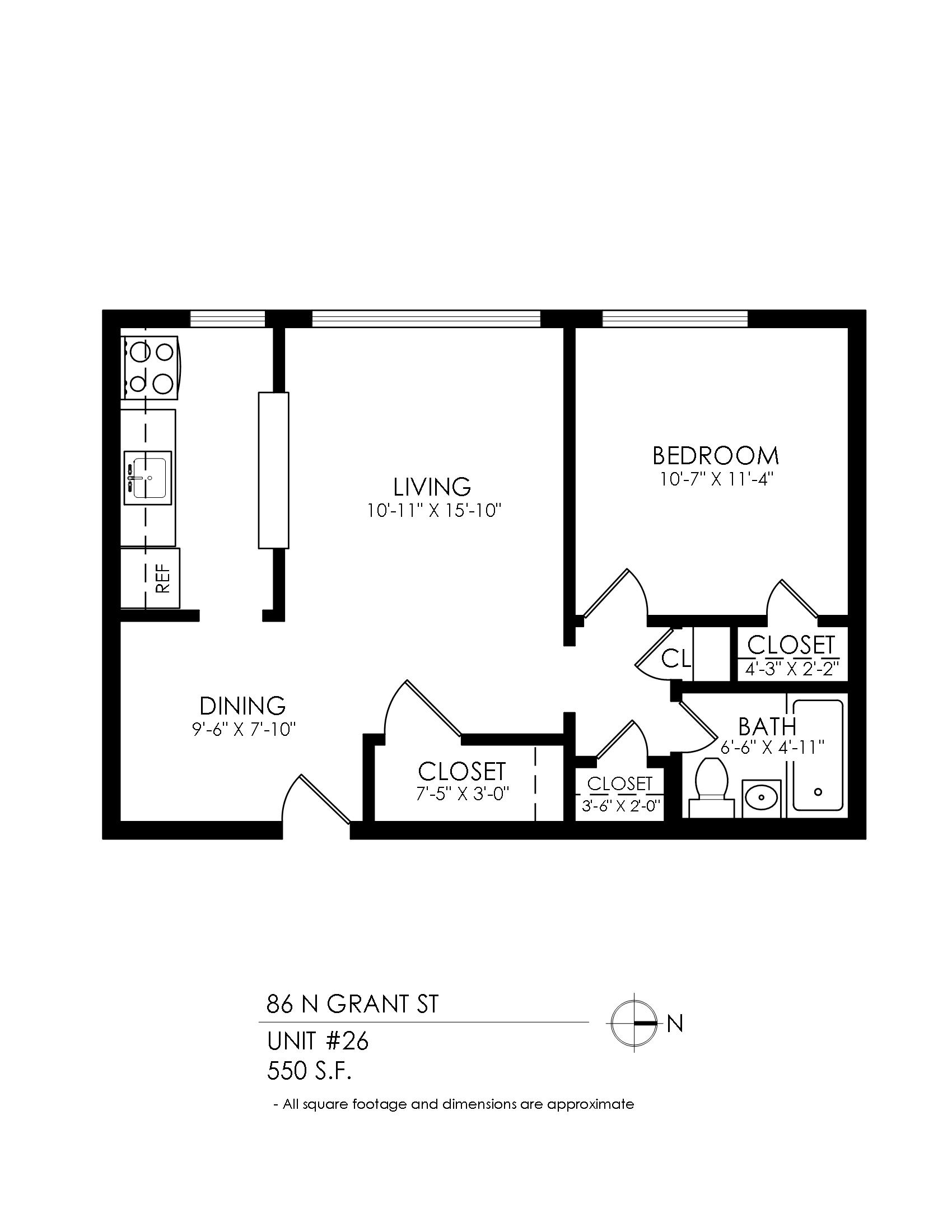 1 Bath 660 sqft.