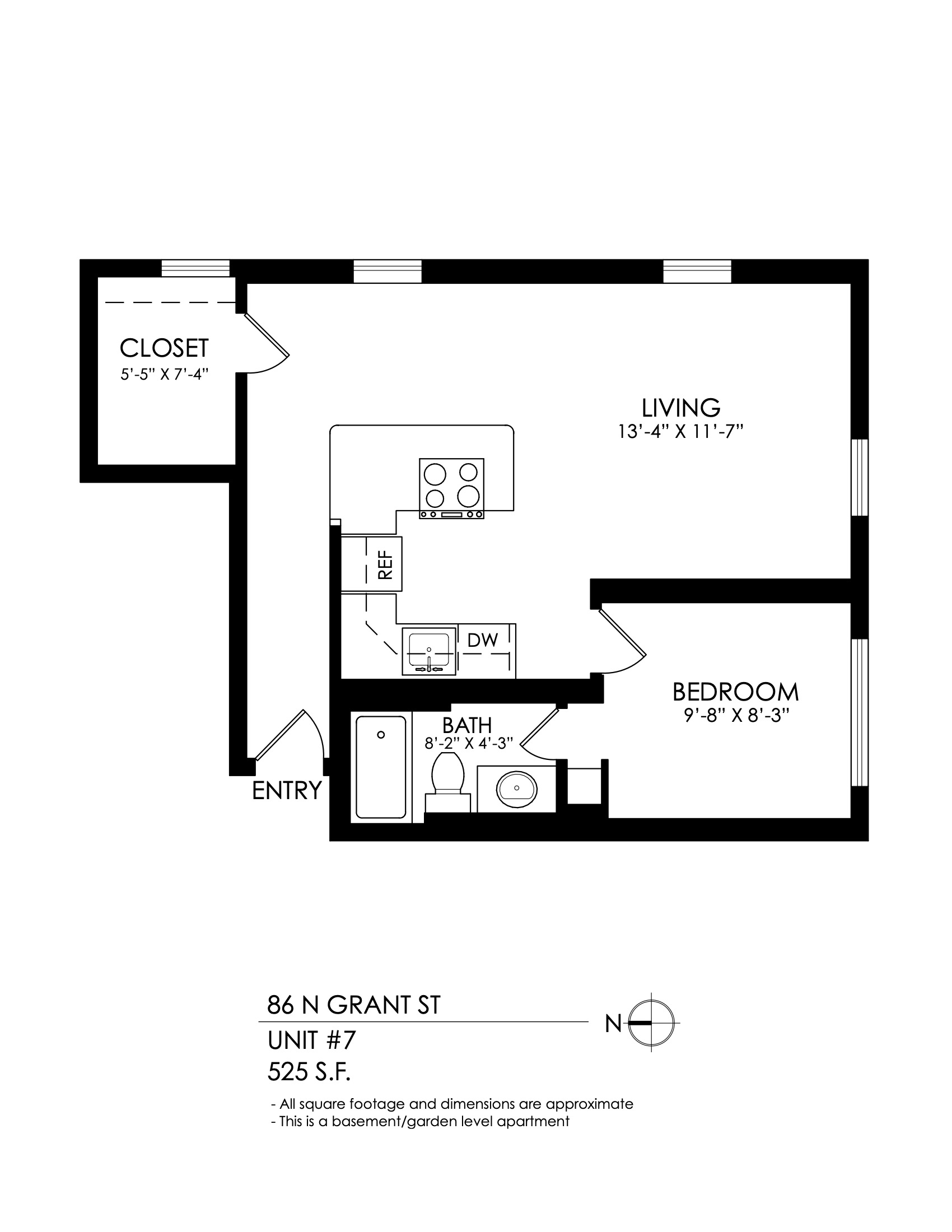 1 Bath 665 sqft.