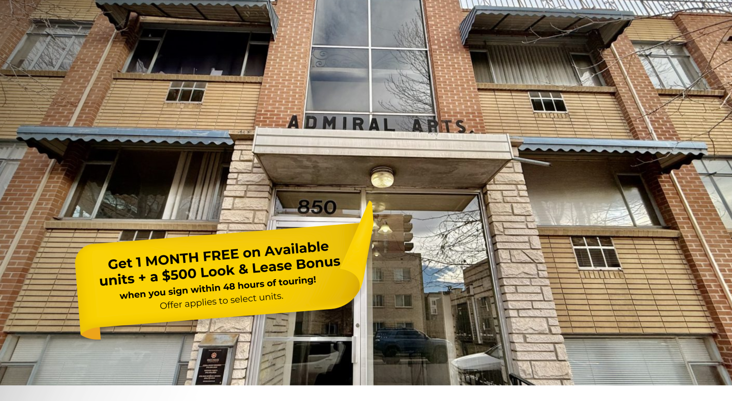 Discover classic mid-century charm at Admiral Apartments, a pet-friendly 1958 vintage building in the heart of Denver's desirable Hale neighborhood. Offering bright studio and spacious one-bedroom homes with air conditioning*, wood-style flooring*, and ceiling fans in the bedrooms*, these apartments perfectly blend retro character with modern comfort. Enjoy the convenience of uncovered off-street parking, on-site laundry, and a prime location steps from Rose Medical Center, 9th + CO's shops and restaurants, Cherry Creek, and downtown. Schedule your tour today and make Admiral Apartments your new home!
