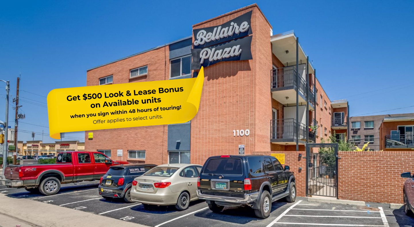 Bellaire Plaza in Glendale, Colorado, offers an array of studio, one, and two-bedroom apartments designed for comfortable and convenient living. These updated units feature air-conditioning, dishwashers, wood-style flooring, large closets, and private patios or balconies, providing an elevated living experience. Ideally situated, Bellaire Plaza is just moments from popular local spots such as Infinity Park, Smashburger, and Whole Foods, providing residents with abundant recreational and dining options right at their doorstep. Glendale is the perfect city spot to get away, but still within easy reach for nights out with friends downtown or Cherry Creek shopping!
