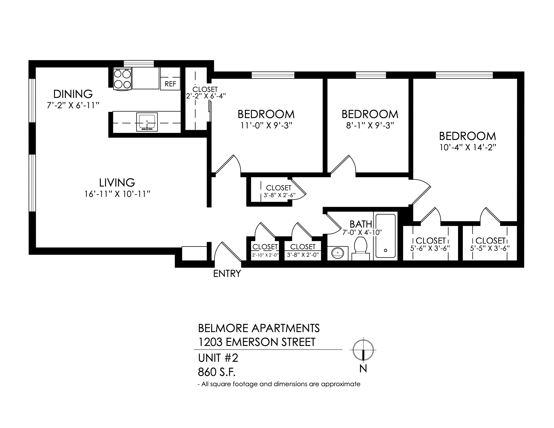 1 Bath 860 sqft.