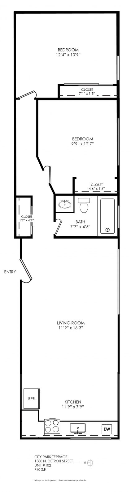 1 Bath 740 sqft.