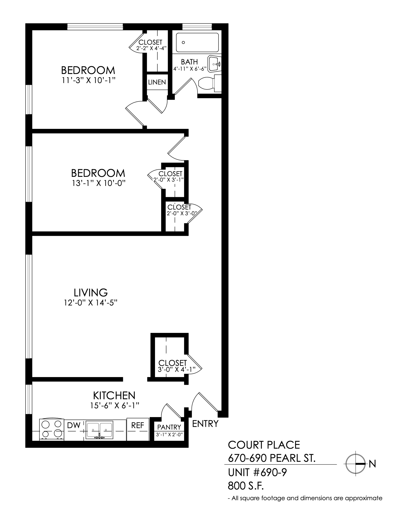 - 1 Bedroom Deposit: $800 (Refundable) Due at Move-In