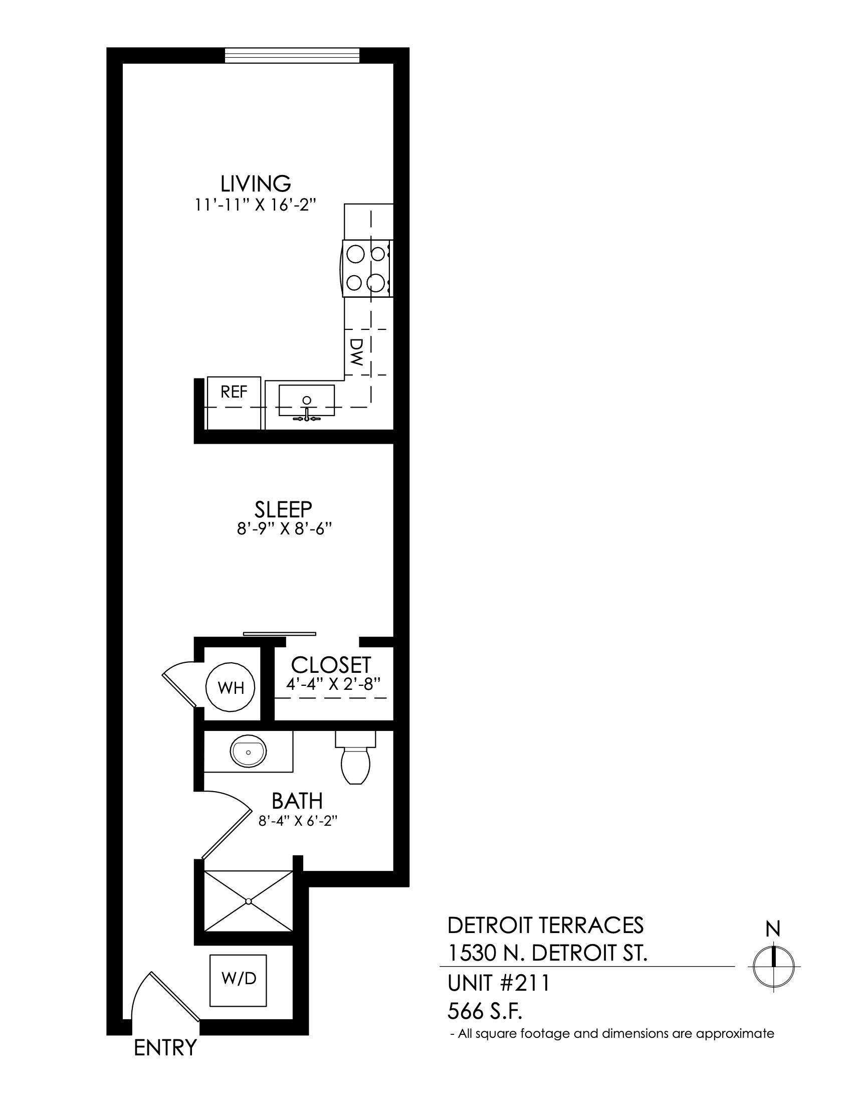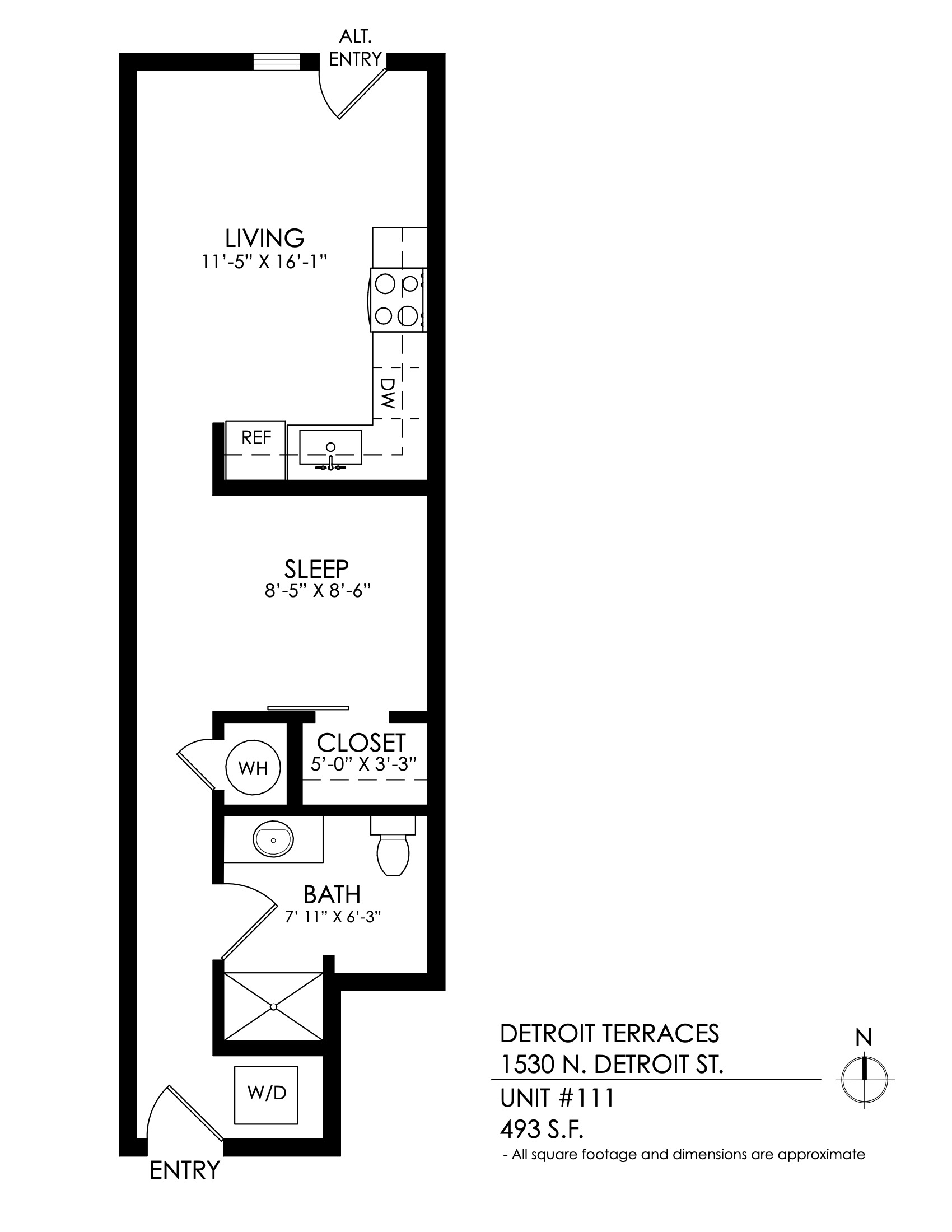 1 Bath 505 sqft.