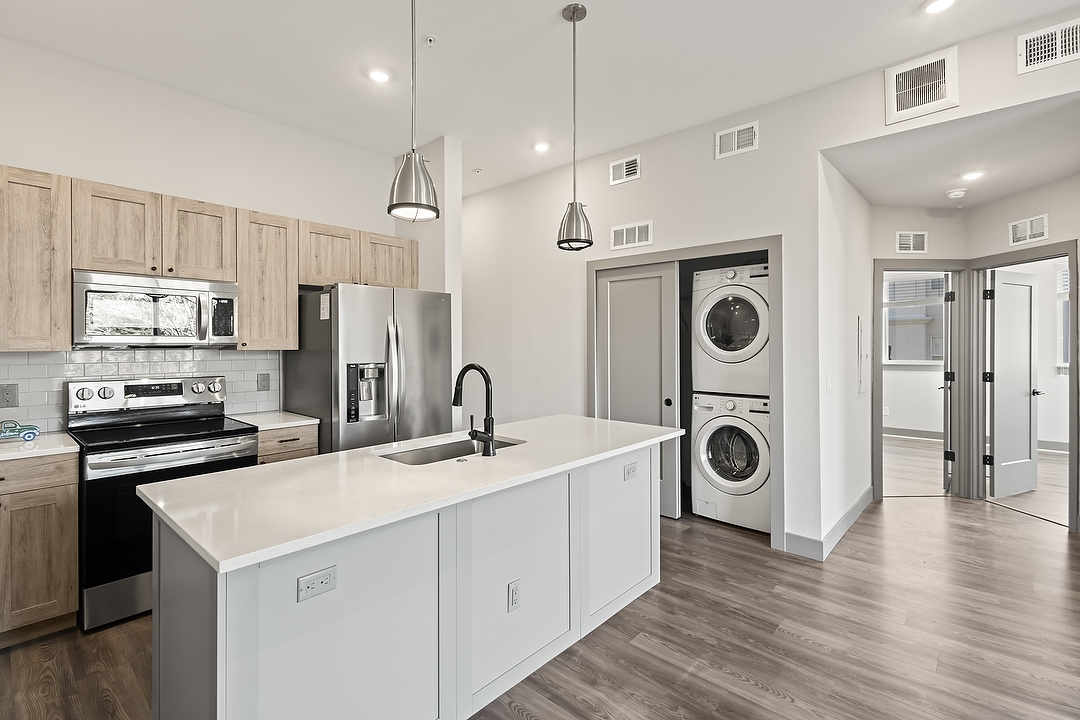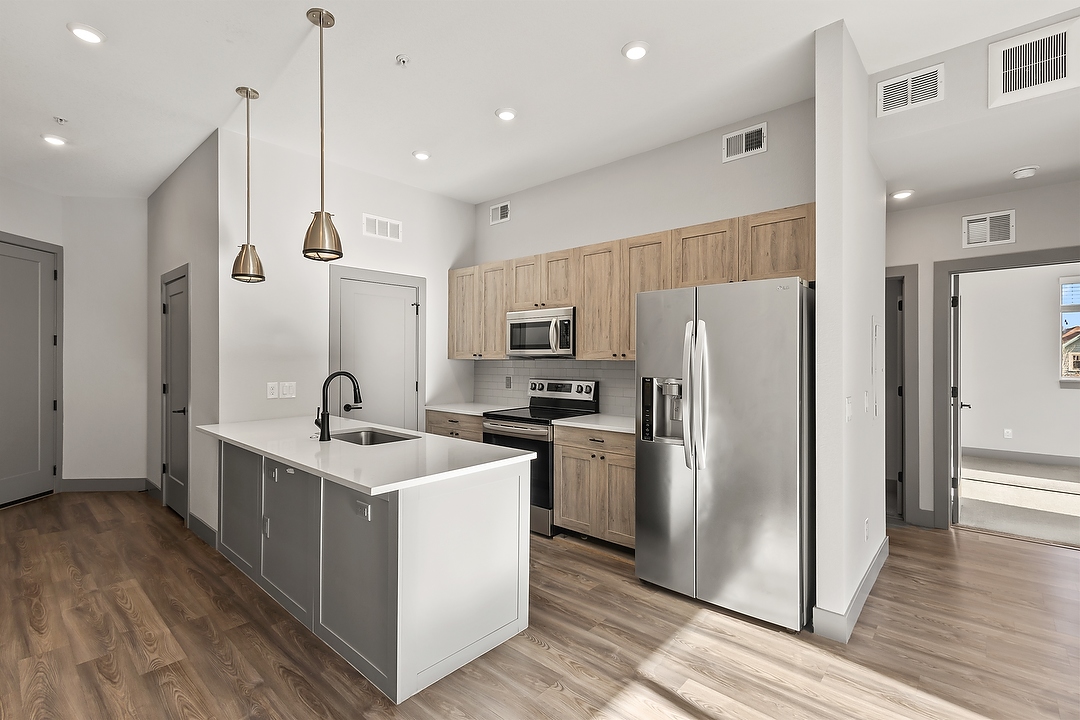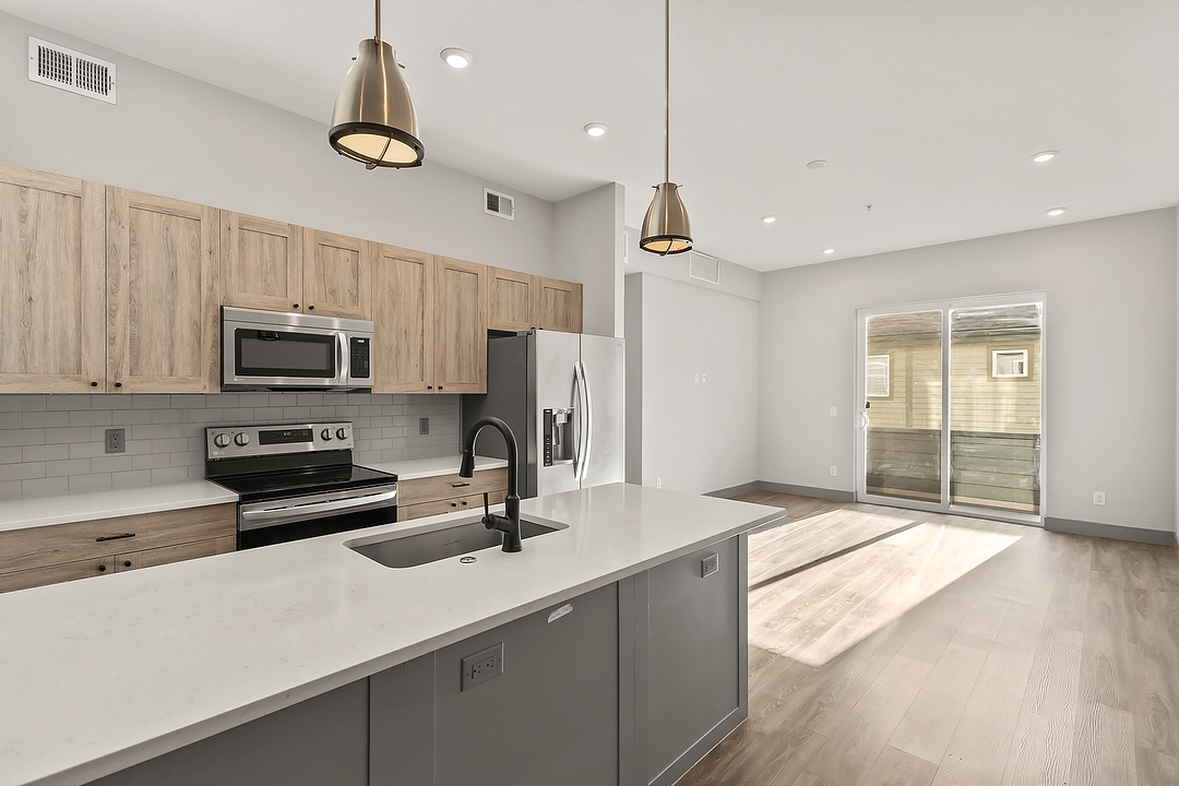 Welcome to Dio, a modern retreat nestled in the vibrant Jefferson Park neighborhood of Denver, CO. Built in 2020, this contemporary community offers thoughtfully designed 1- and 2-bedroom apartments that blend style and comfort. Inside each home, you'll find quartz countertops, designer tile backsplashes, and modern cabinetry with designer hardware, complemented by pendant lighting and sleek fixtures. Enjoy stainless steel appliances, dishwashers, and in-home washers and dryers for ultimate convenience. Each residence also features wood-style flooring, carpeted bedrooms*, air conditioning, and digital programmable thermostats for personalized comfort. Take in fresh air and city views from your private patio or balcony*, all while living just moments from the best dining, parks, and entertainment that Denver has to offer.