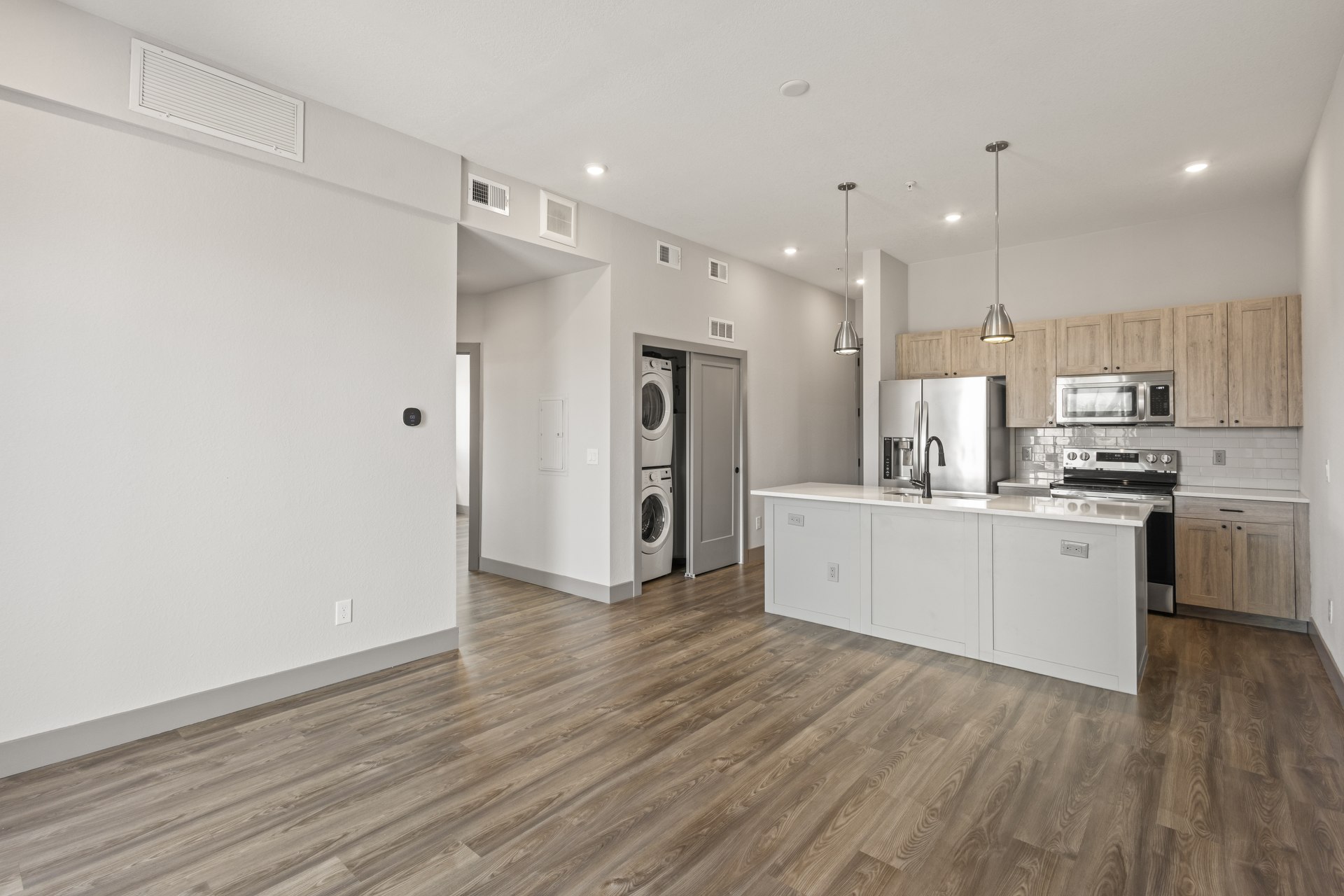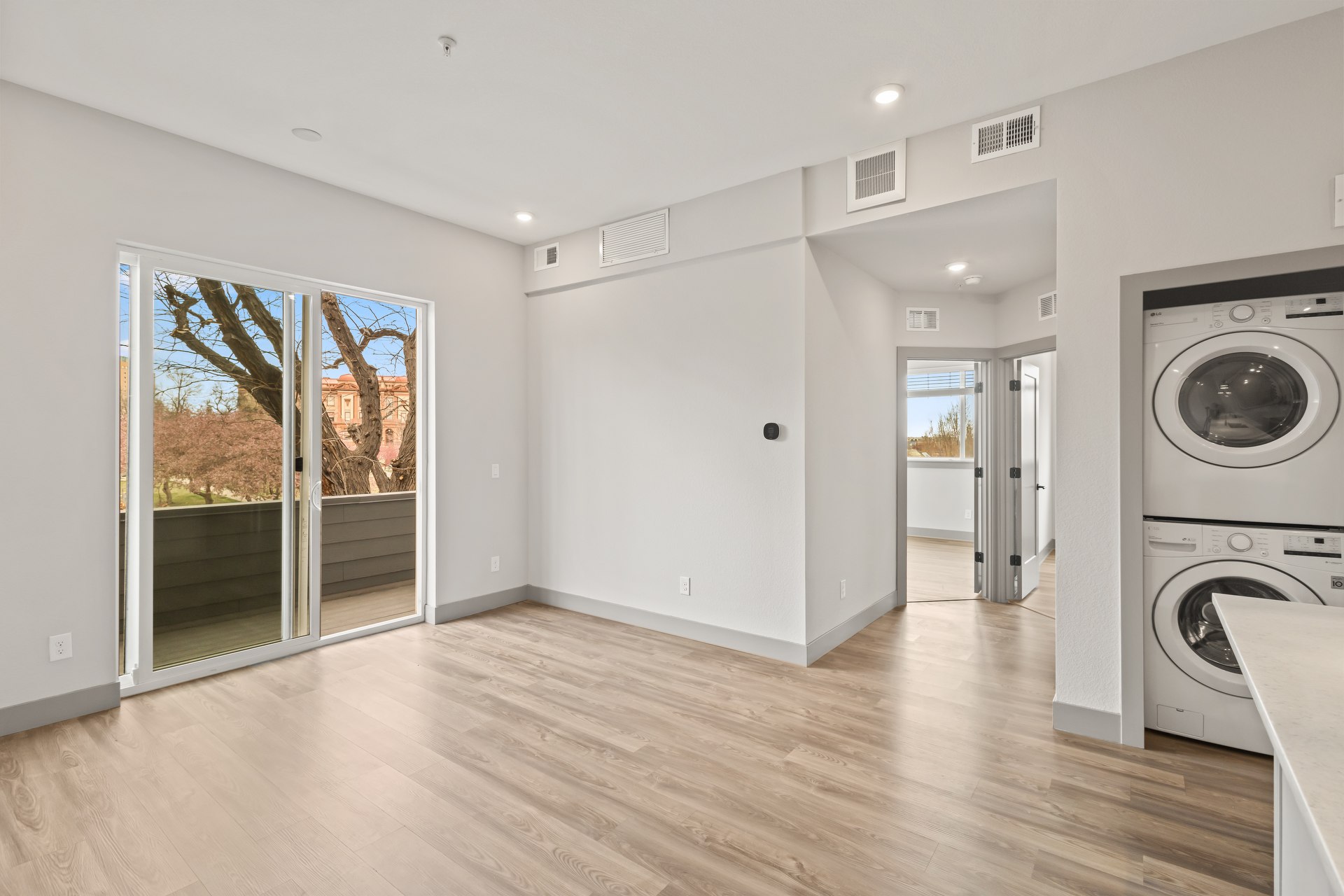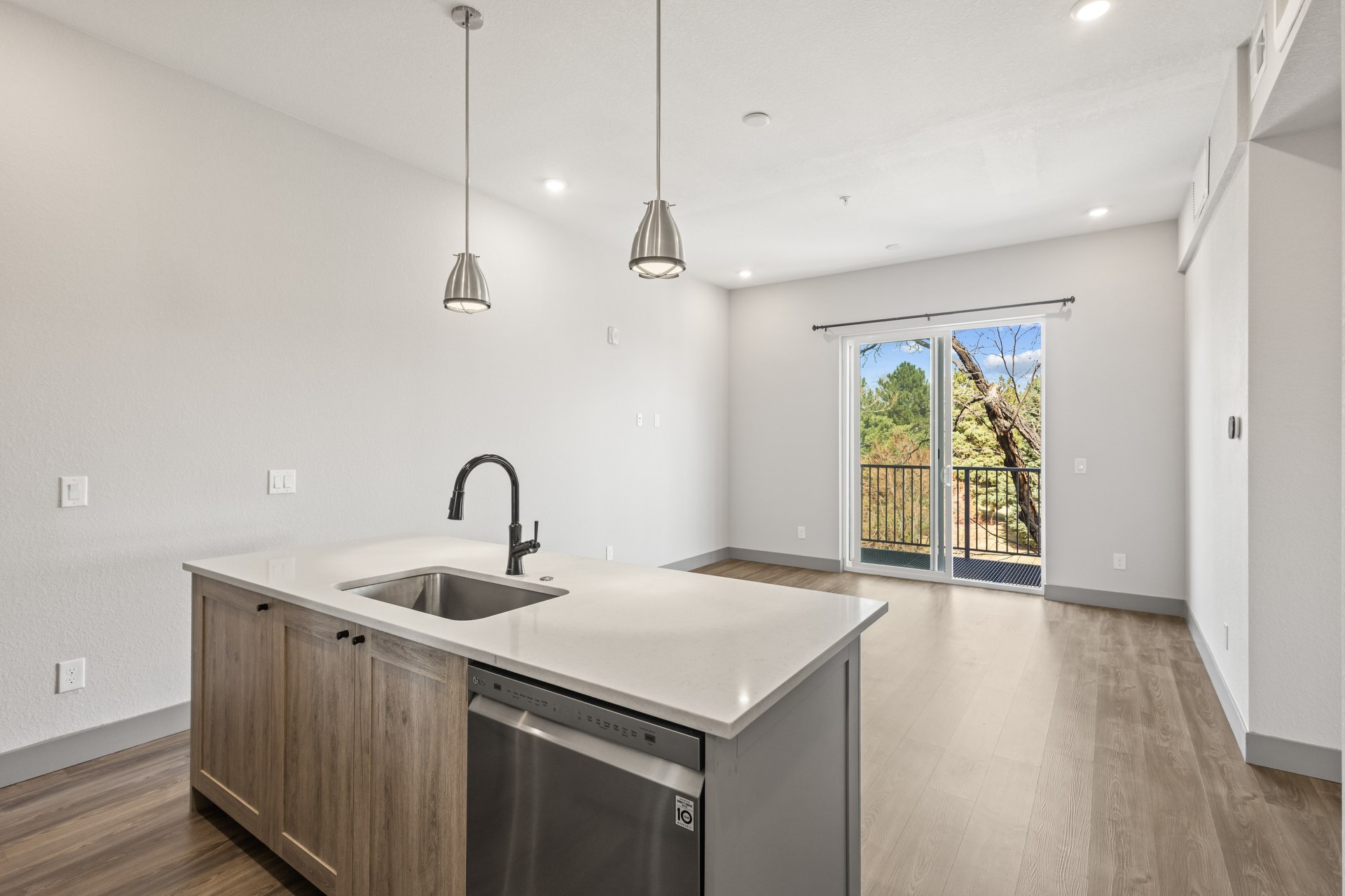 Welcome to Dio, a modern retreat nestled in the vibrant Jefferson Park neighborhood of Denver, CO. Built in 2020, this contemporary community offers thoughtfully designed 1- and 2-bedroom apartments that blend style and comfort. Inside each home, you'll find quartz countertops, designer tile backsplashes, and modern cabinetry with designer hardware, complemented by pendant lighting and sleek fixtures. Enjoy stainless steel appliances, dishwashers, and in-home washers and dryers for ultimate convenience. Each residence also features wood-style flooring, carpeted bedrooms*, air conditioning, and digital programmable thermostats for personalized comfort. Take in fresh air and city views from your private patio or balcony*, all while living just moments from the best dining, parks, and entertainment that Denver has to offer.