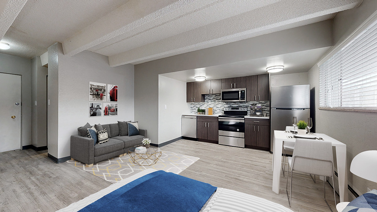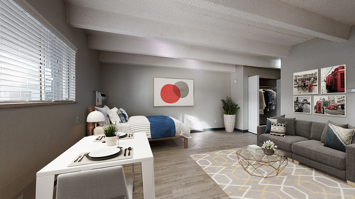 Discover Dolphin, a pet-friendly mid-century classic built in 1962 in the heart of Denver's lively University of Denver neighborhood offering studios, 1-bedroom, and 2-bedroom apartments with private patios or balconies, wood-style flooring, air conditioning*, dishwashers*, and stainless steel appliances* all just steps from campus, cafes, parks, and transit; enjoy uncovered parking, extra storage spaces, on-site coinless laundry, plus resort-style outdoor seating with a fire pit and BBQ grills, and cozy indoor seating with a TV for relaxing or entertaining. *Select units - contact us to confirm. Schedule your tour today and dive into timeless charm with modern comfort at Dolphin!