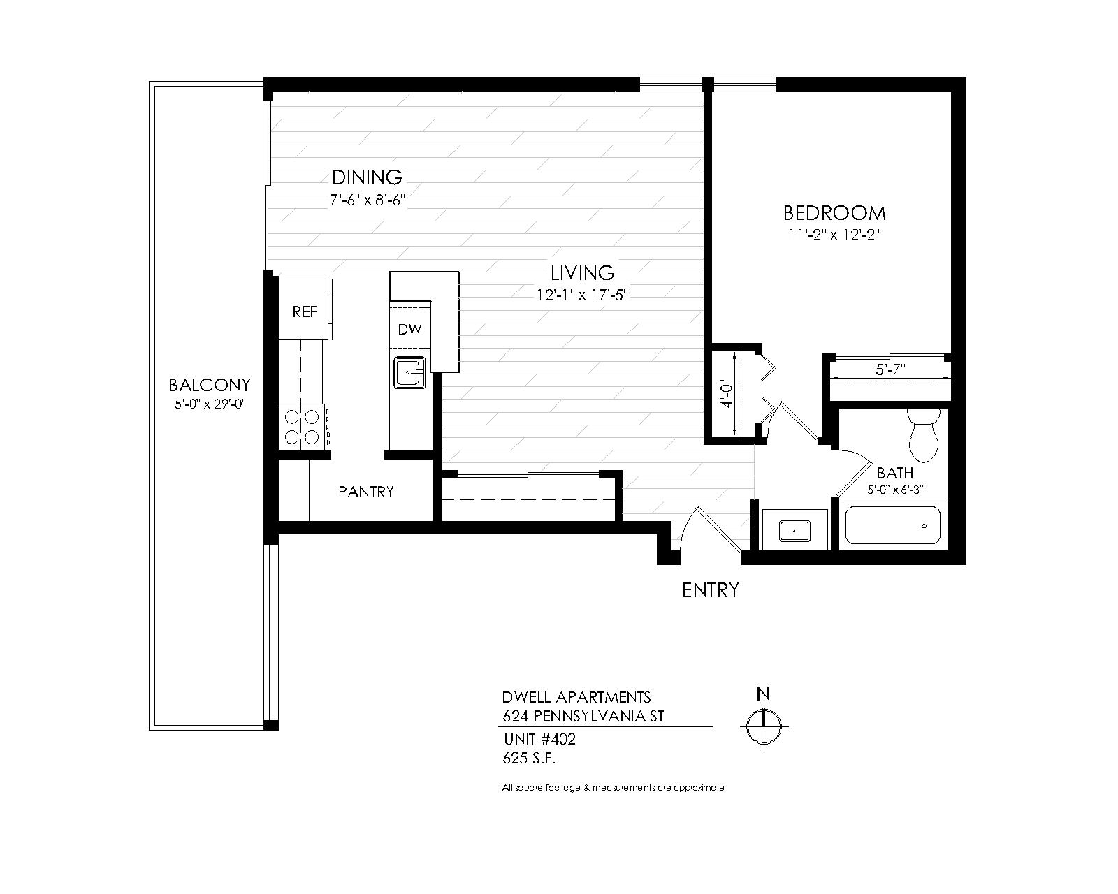1 Bath 625 sqft.