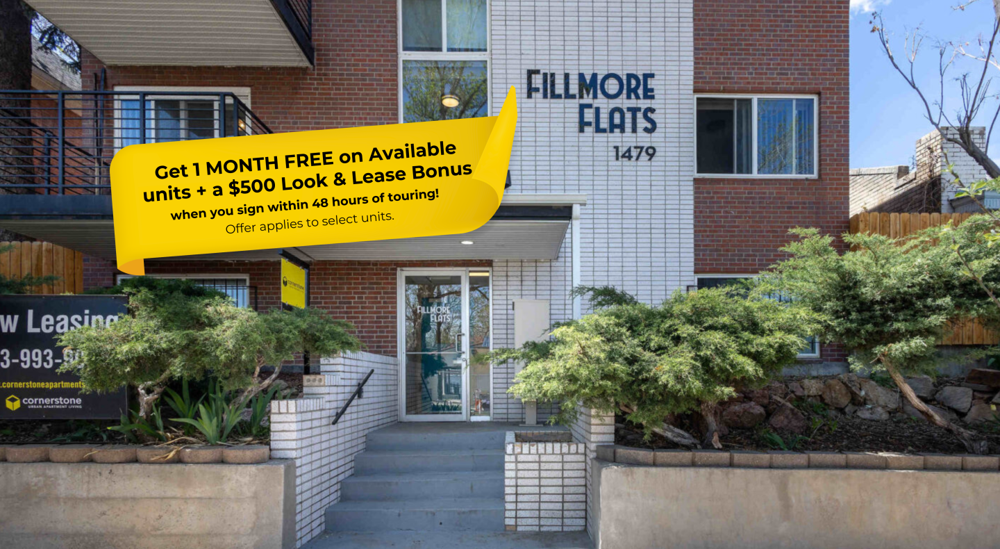 Nestled in the vibrant Congress Park neighborhood, Fillmore Flats offers a perfect Denver home with its collection of studio and one-bedroom apartments. Situated mere moments from Denver's sprawling City Park, this building is perfect for outdoor enthusiasts, culture aficionados, and fur-loving residents! There are plenty of avenues to explore, whether that's the endless walking paths for you and your pet, the Denver Zoo, or the Denver Museum of Nature & Science. With its prime location just off Colfax Avenue, residents are treated to a wealth of food and entertainment options, including easy access to downtown, making Fillmore Flats the ultimate spot for your next Mile High Pad!