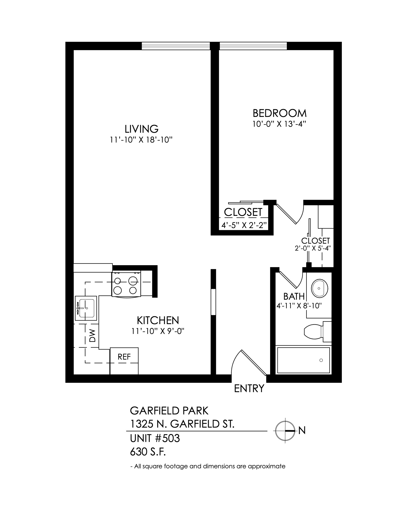 1 Bath 630 sqft.