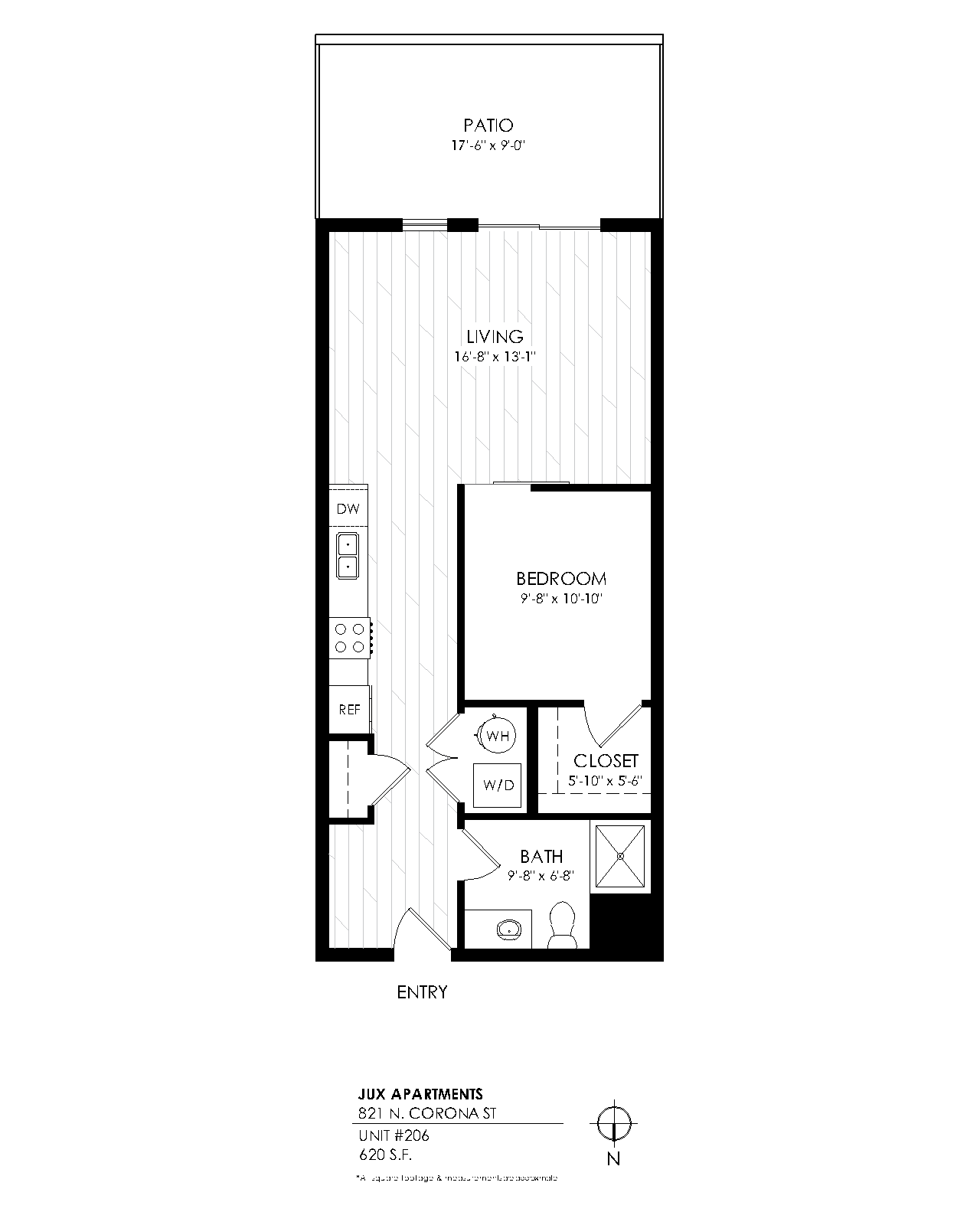 1 Bath 620 sqft.