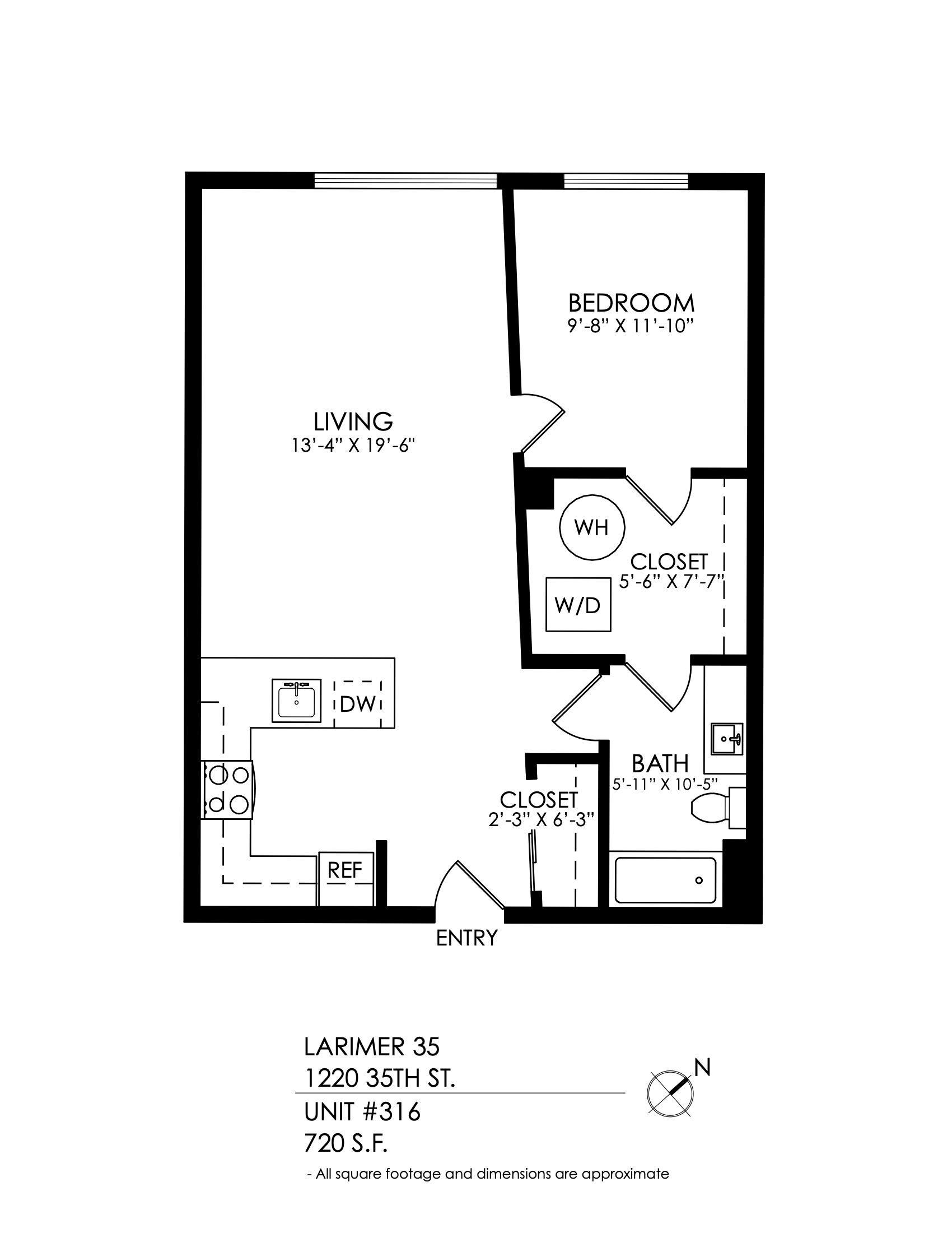 1 Bath 720 sqft.