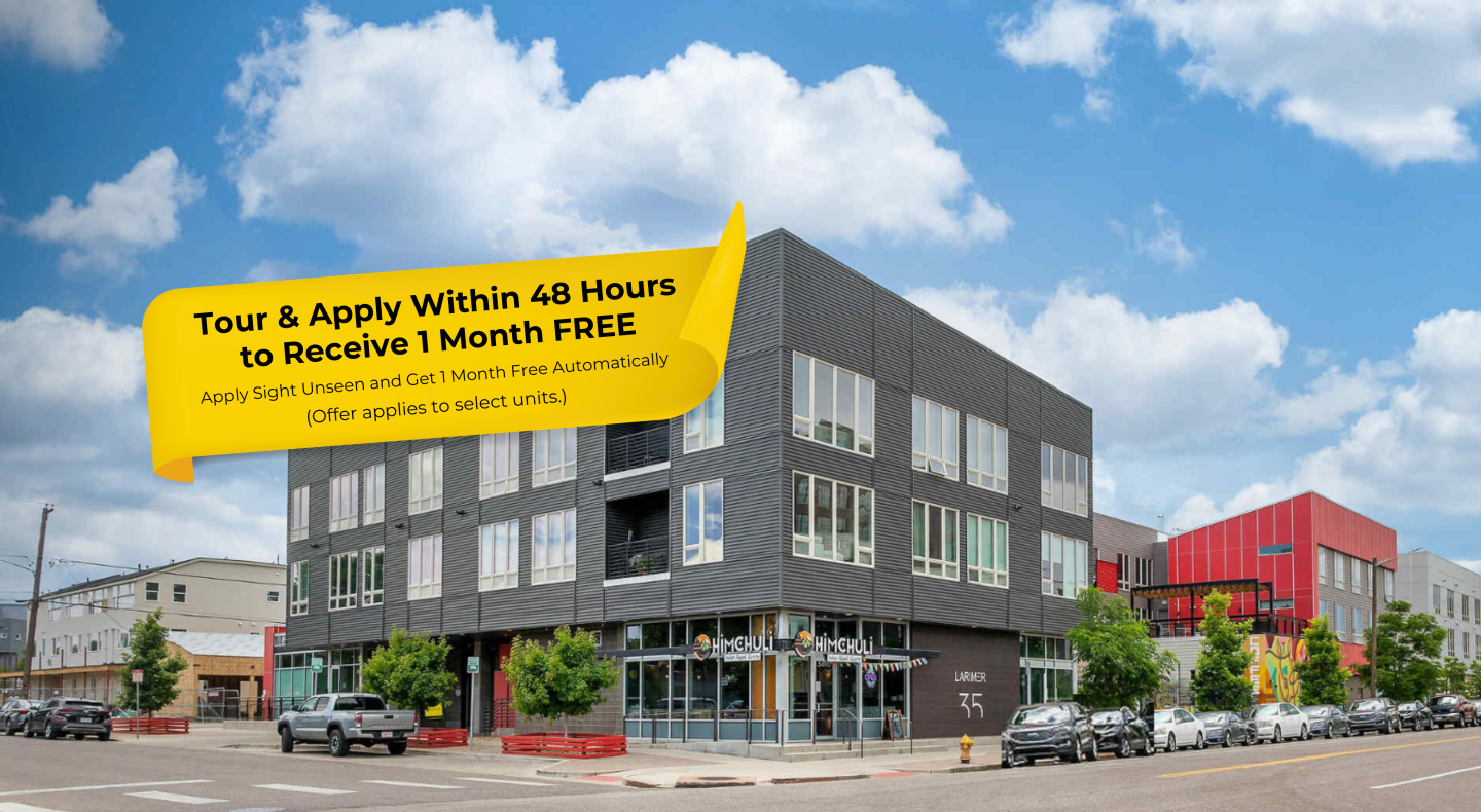 Welcome to Larimer 35, a pet-friendly community in Denver's vibrant RiNo neighborhood offering modern comforts and urban convenience. Enjoy stylish features such as an in-unit washer and dryer, stainless steel appliances, granite-style countertops, spacious closets, and private Juliet balconies or full-size balconies. Residents also have access to a fitness center, sundeck, and courtyard with a grill, plus the ease of reserved parking. Just steps from RiNo's eclectic dining and art scene and minutes from the 38th-Blake train station, Larimer 35 connects you to Union Station and all Denver has to offer.