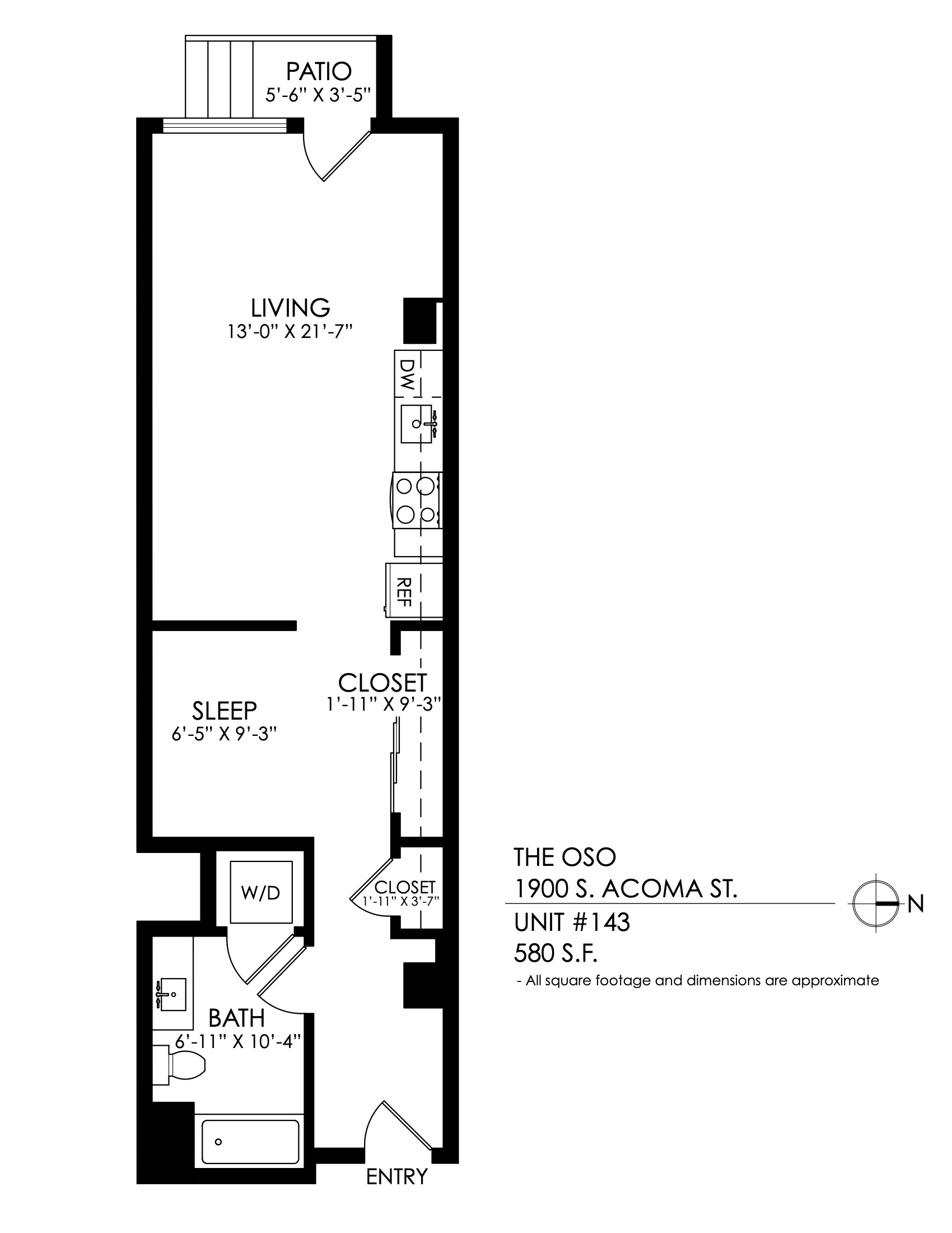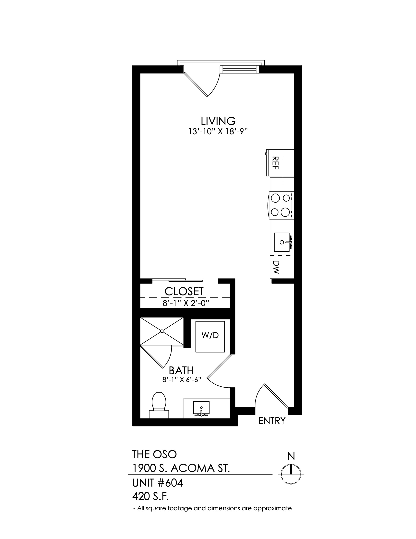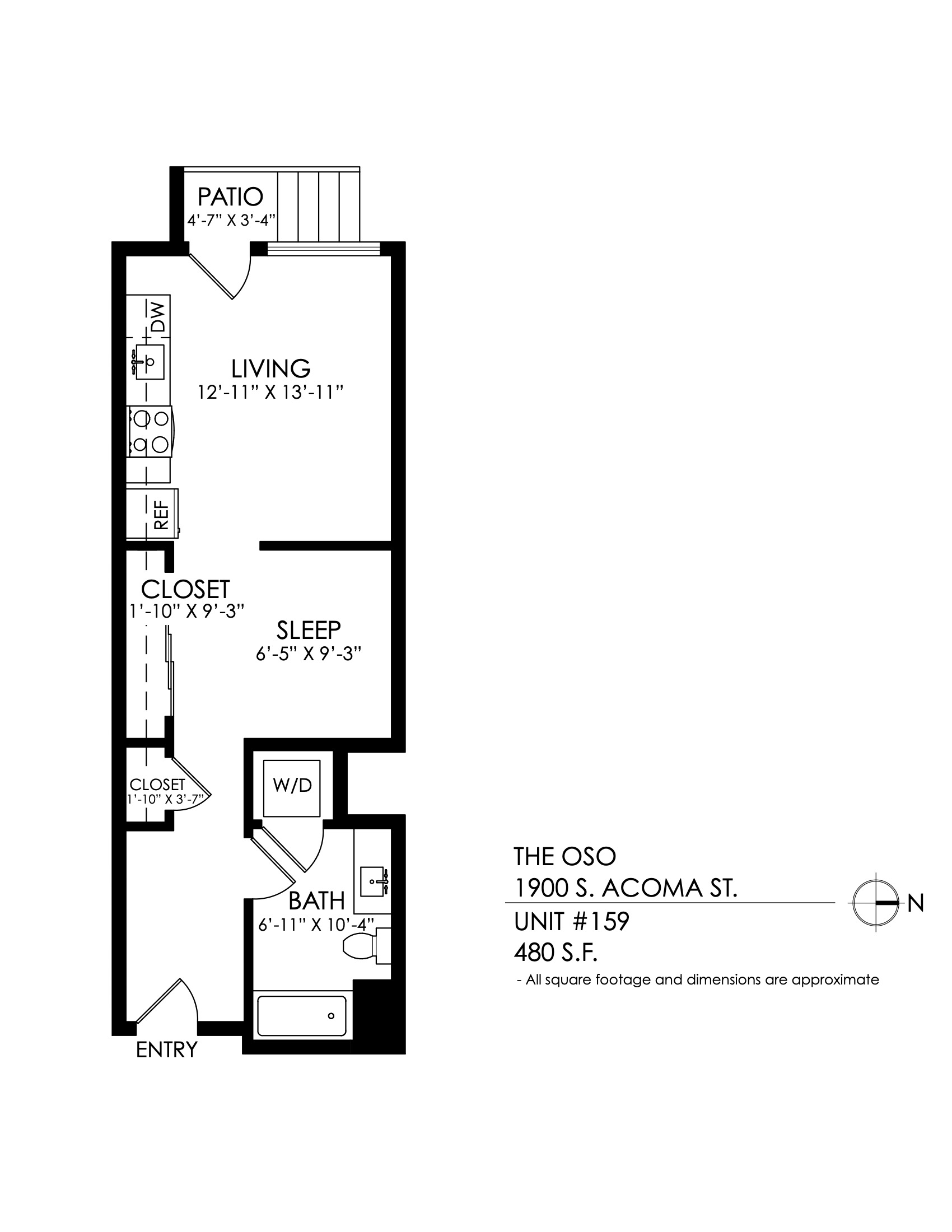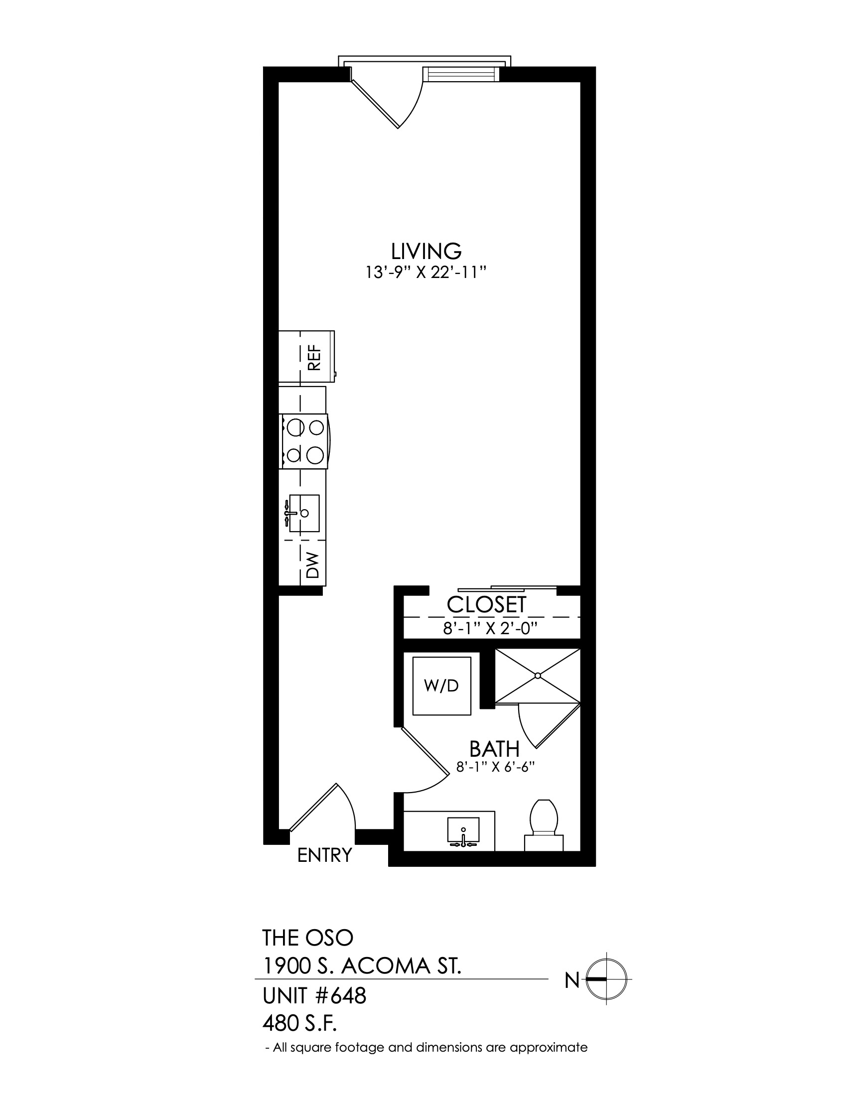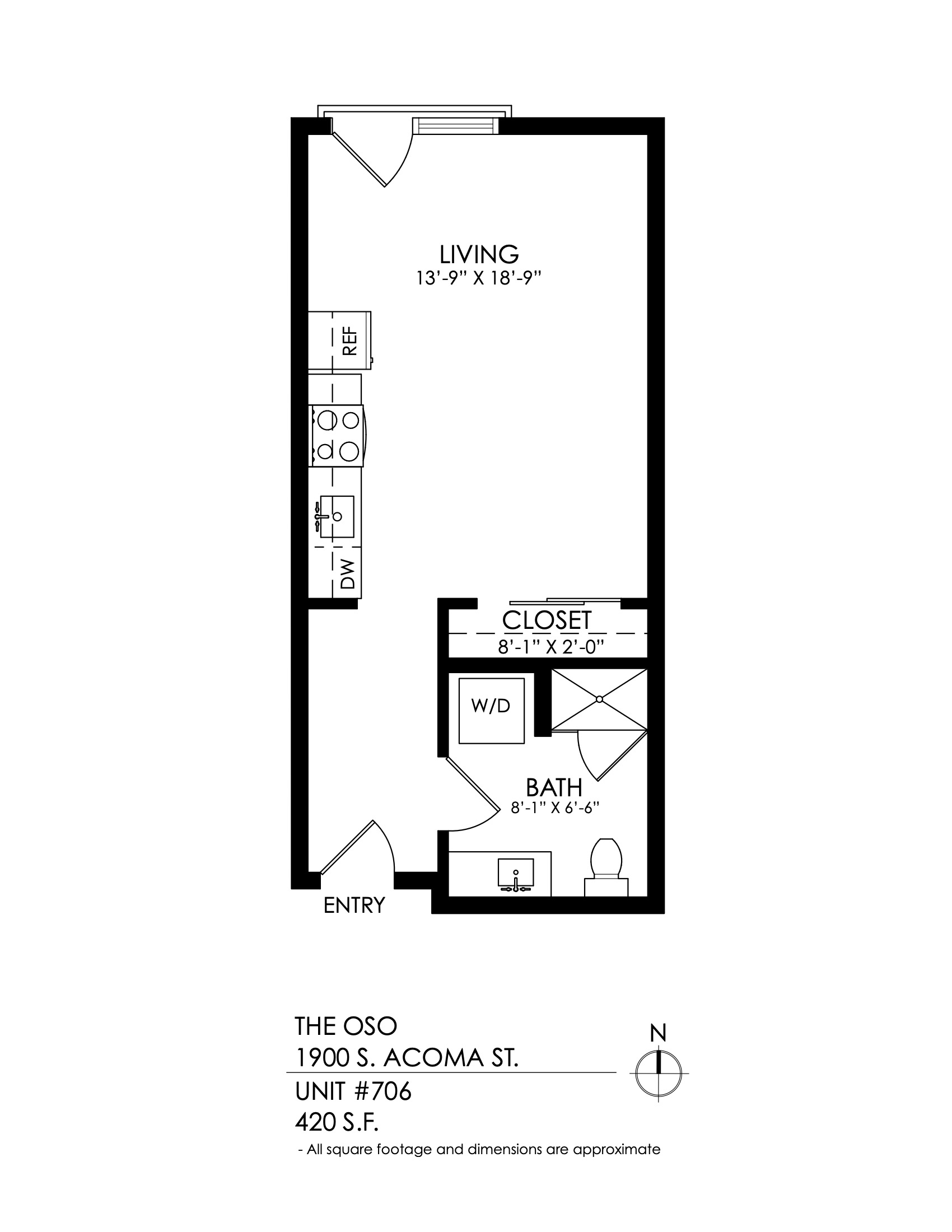 1 Bath 699 sqft.