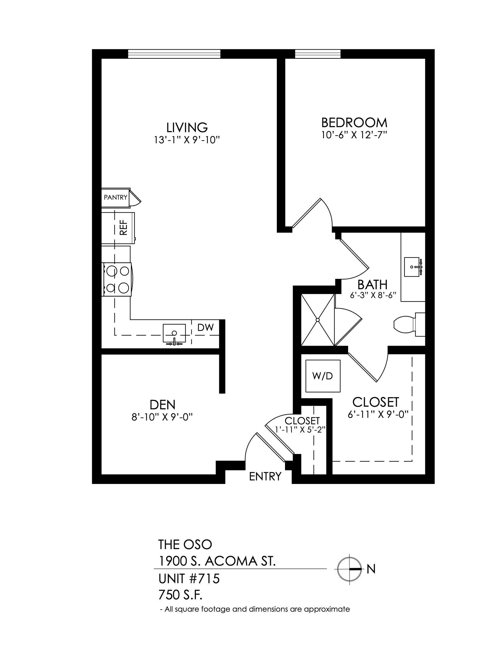 1 Bath 750 sqft.