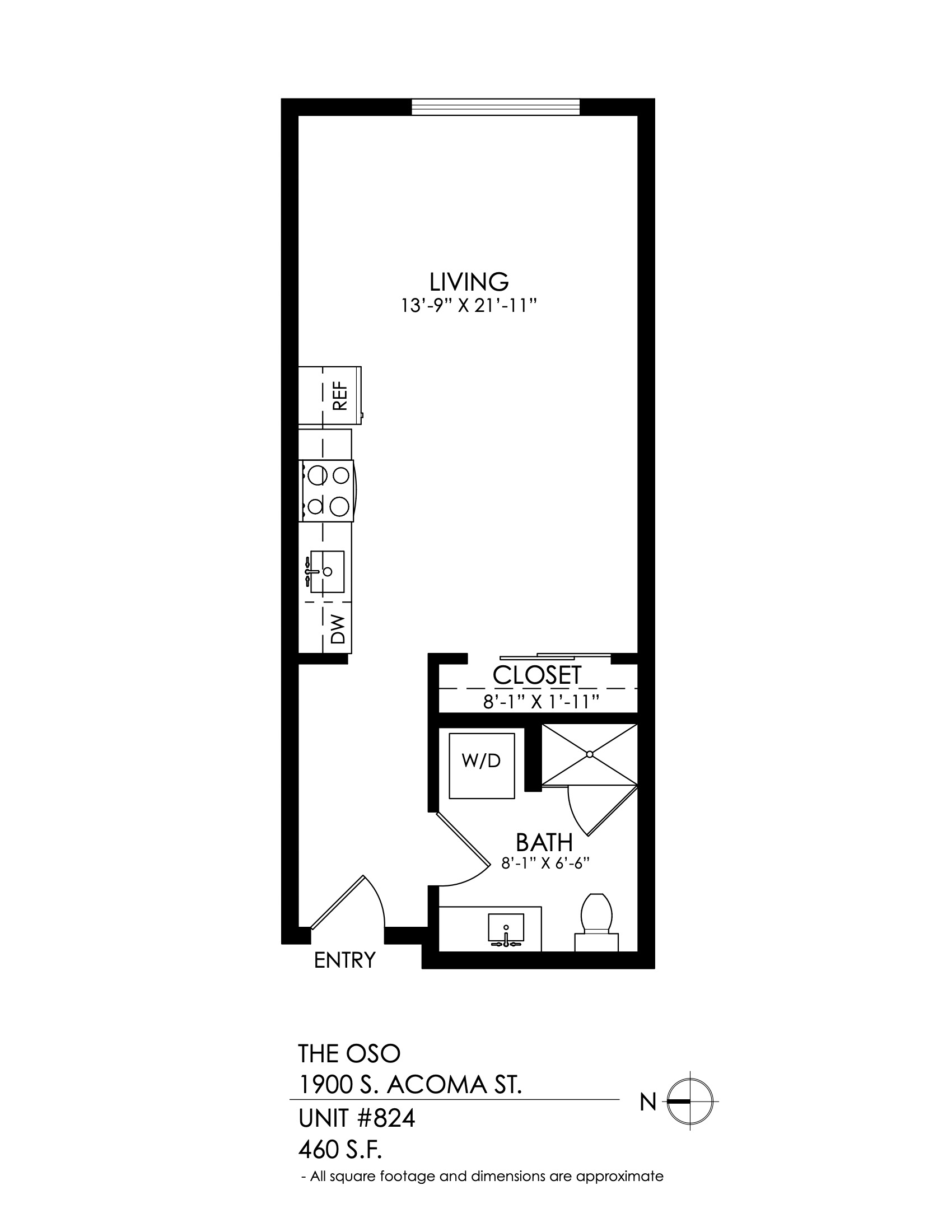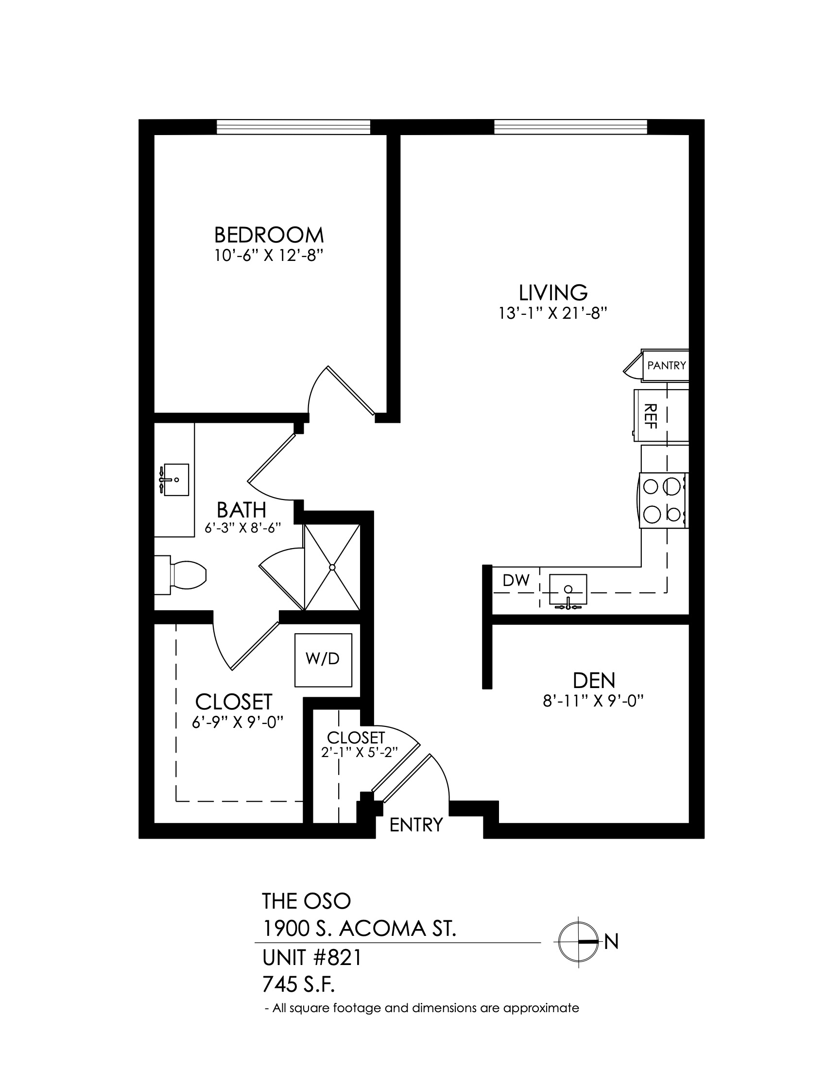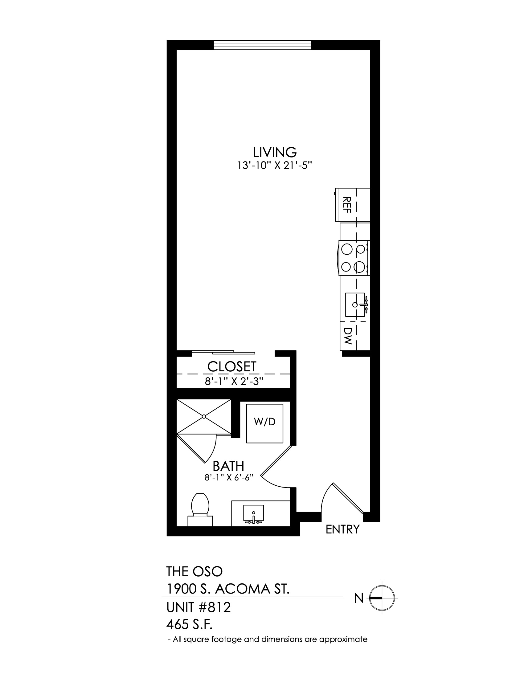 1 Bath 808 sqft.