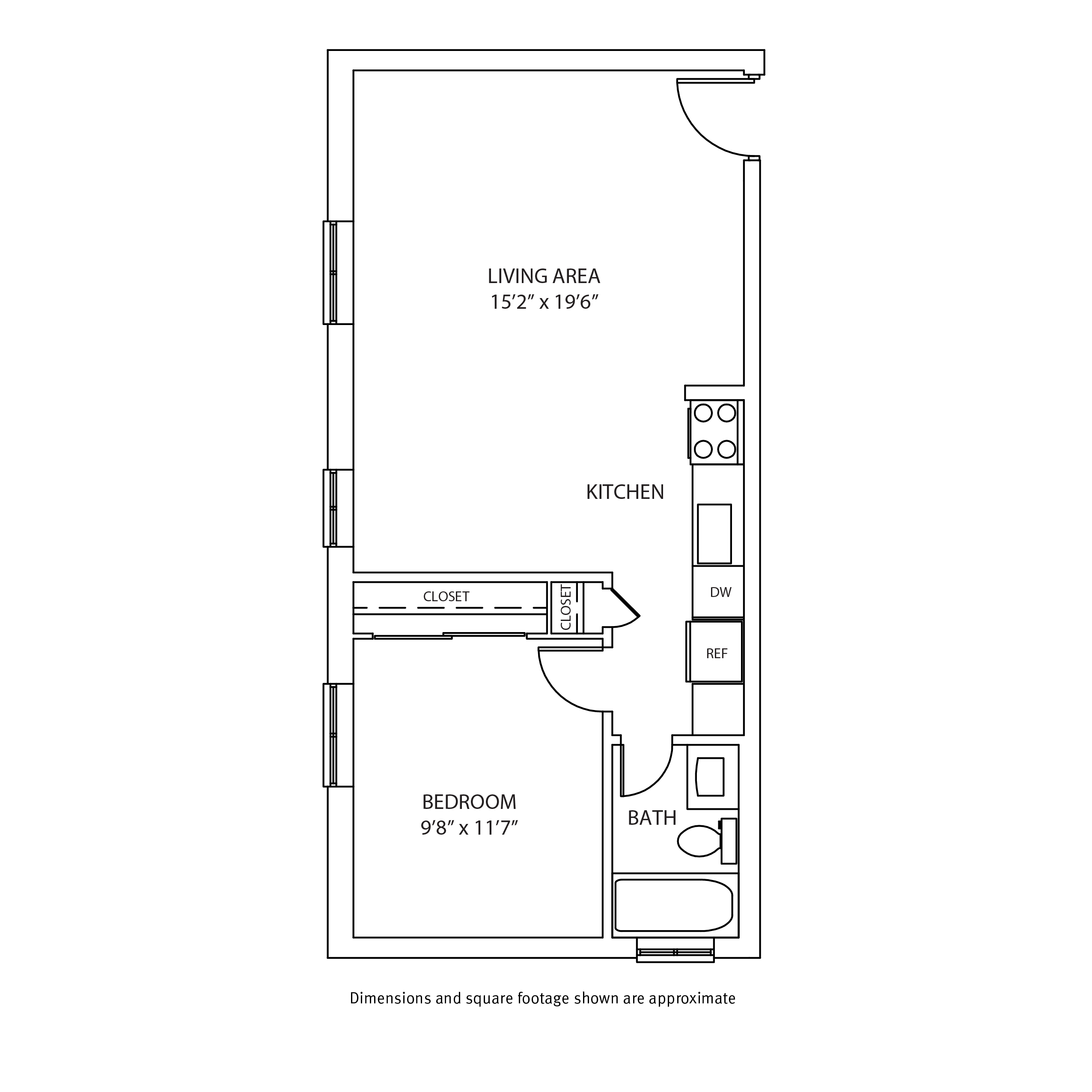 - 1-Bedroom Deposit: $800 Due at move-in (Refundable)