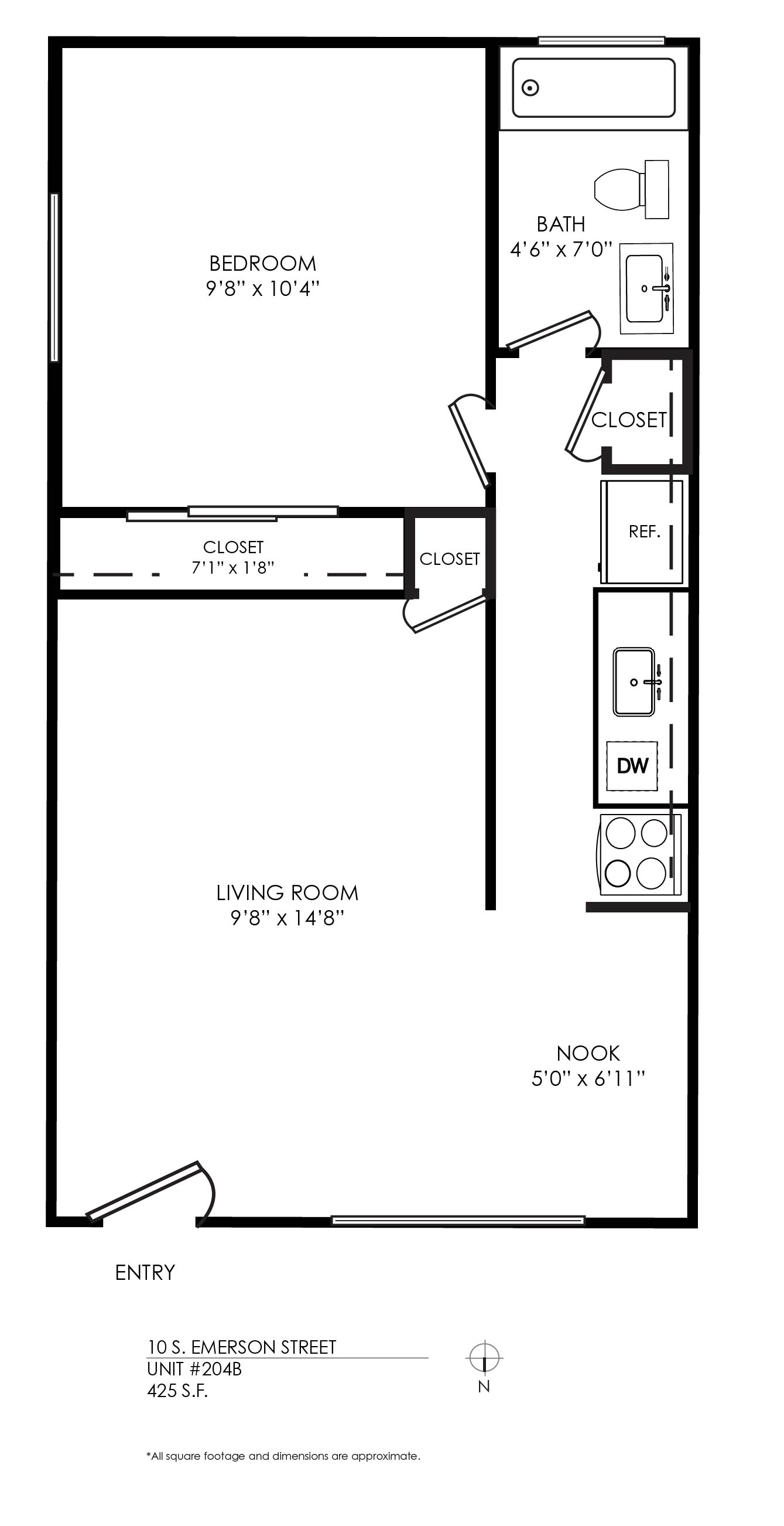 1 Bath 710 sqft.