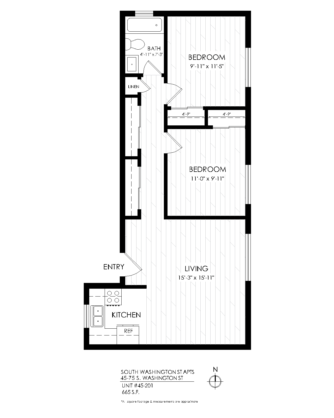 1 Bath 665 sqft.