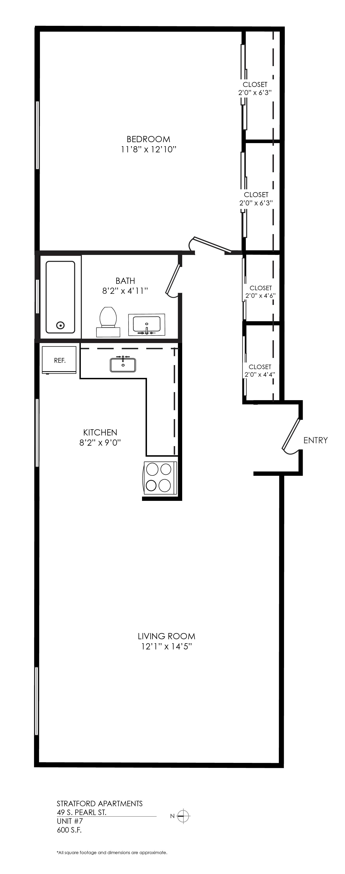 1 Bath 600 sqft.