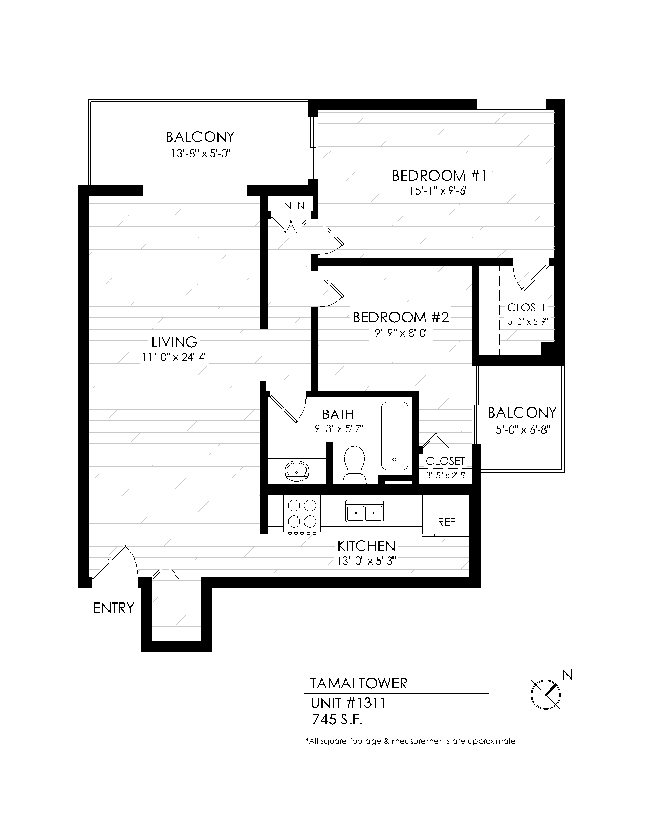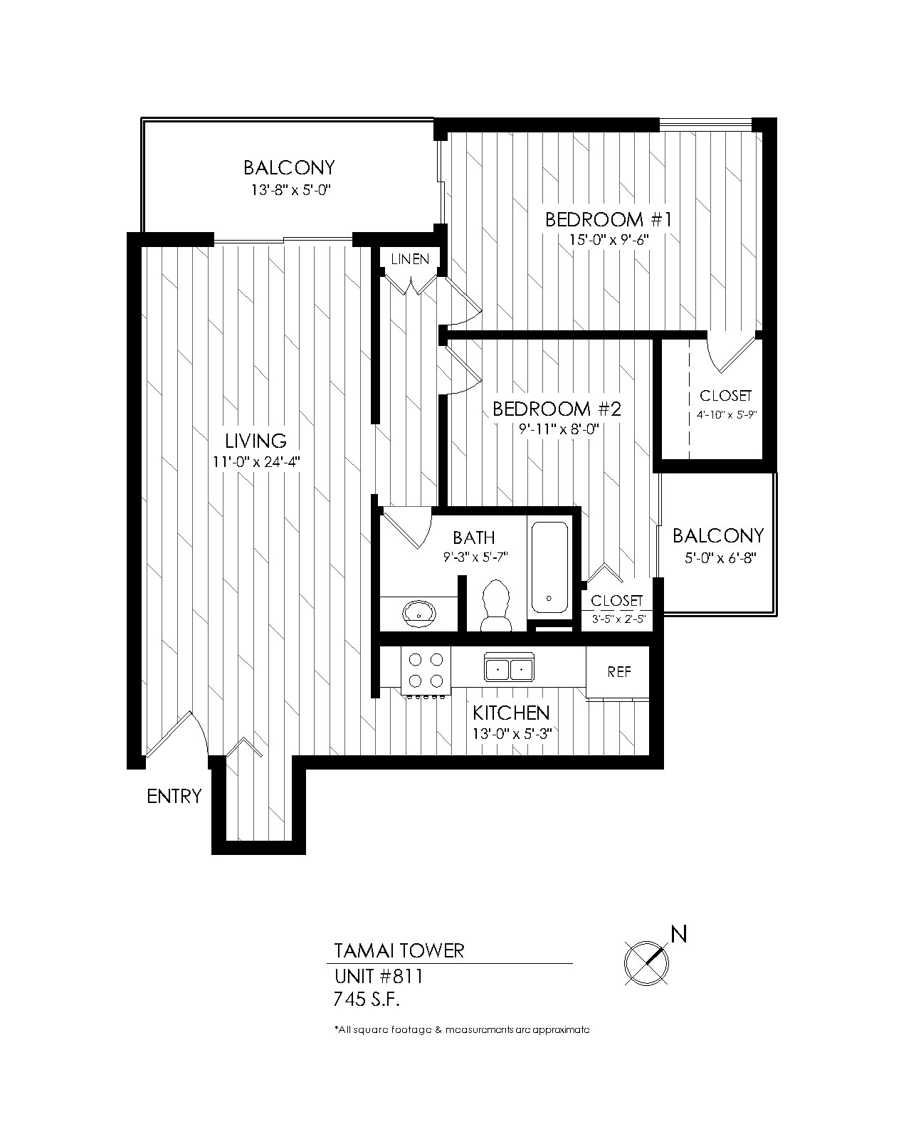 1 Bath 745 sqft.