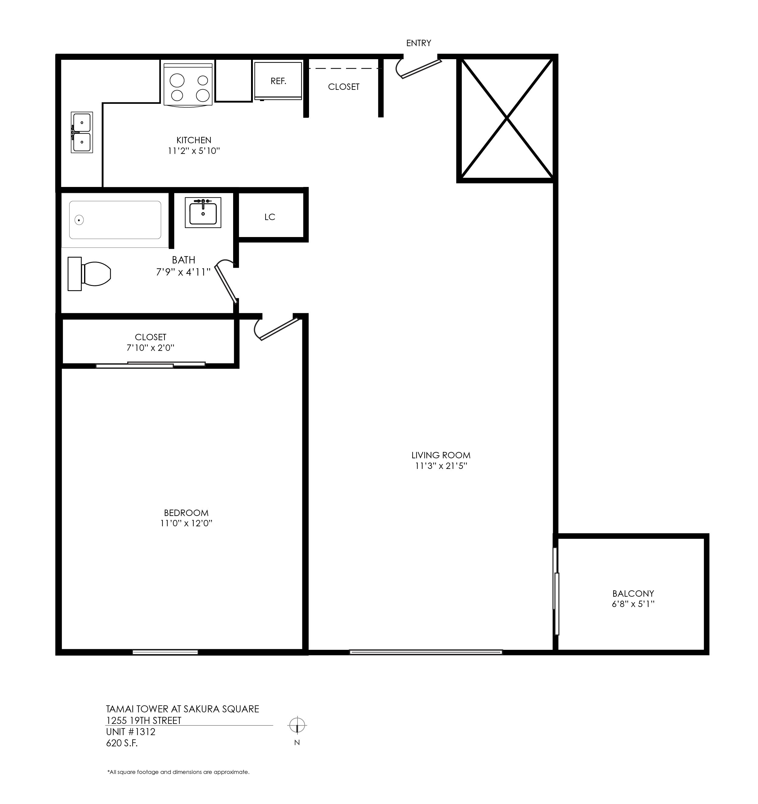 1 Bath 620 sqft.