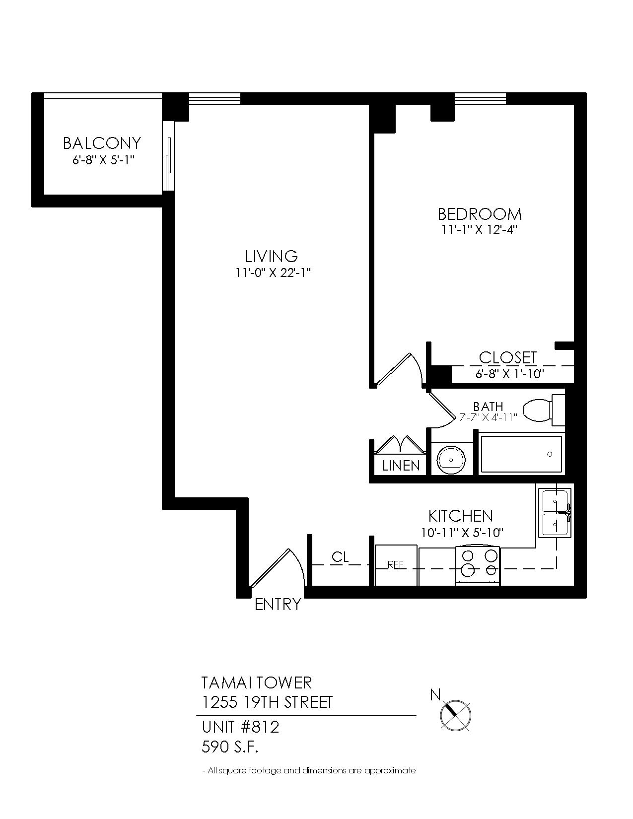 1 Bath 590 sqft.