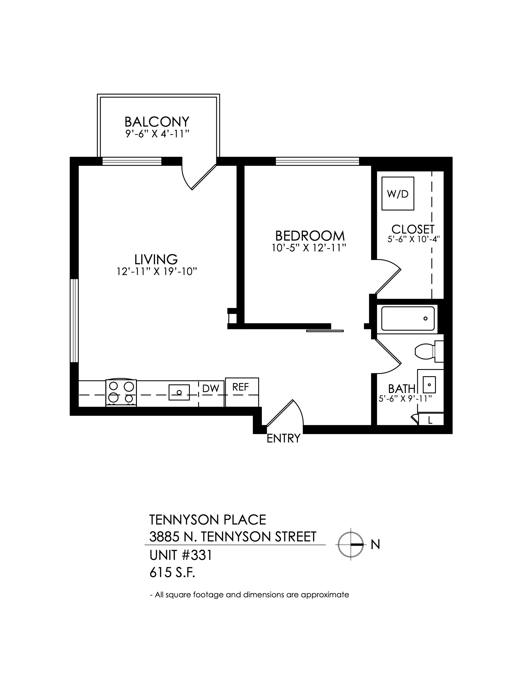 1 Bath 615 sqft.