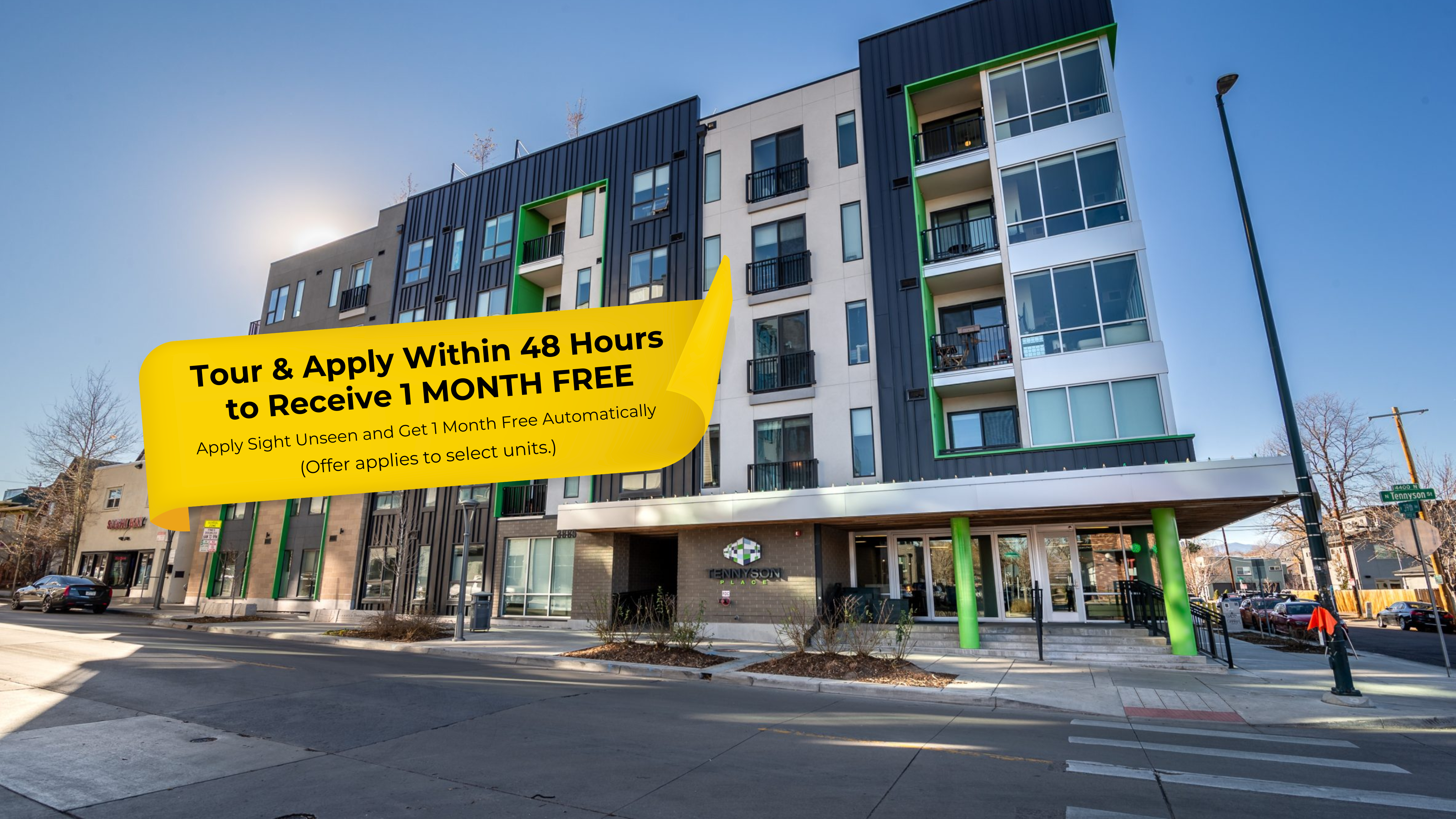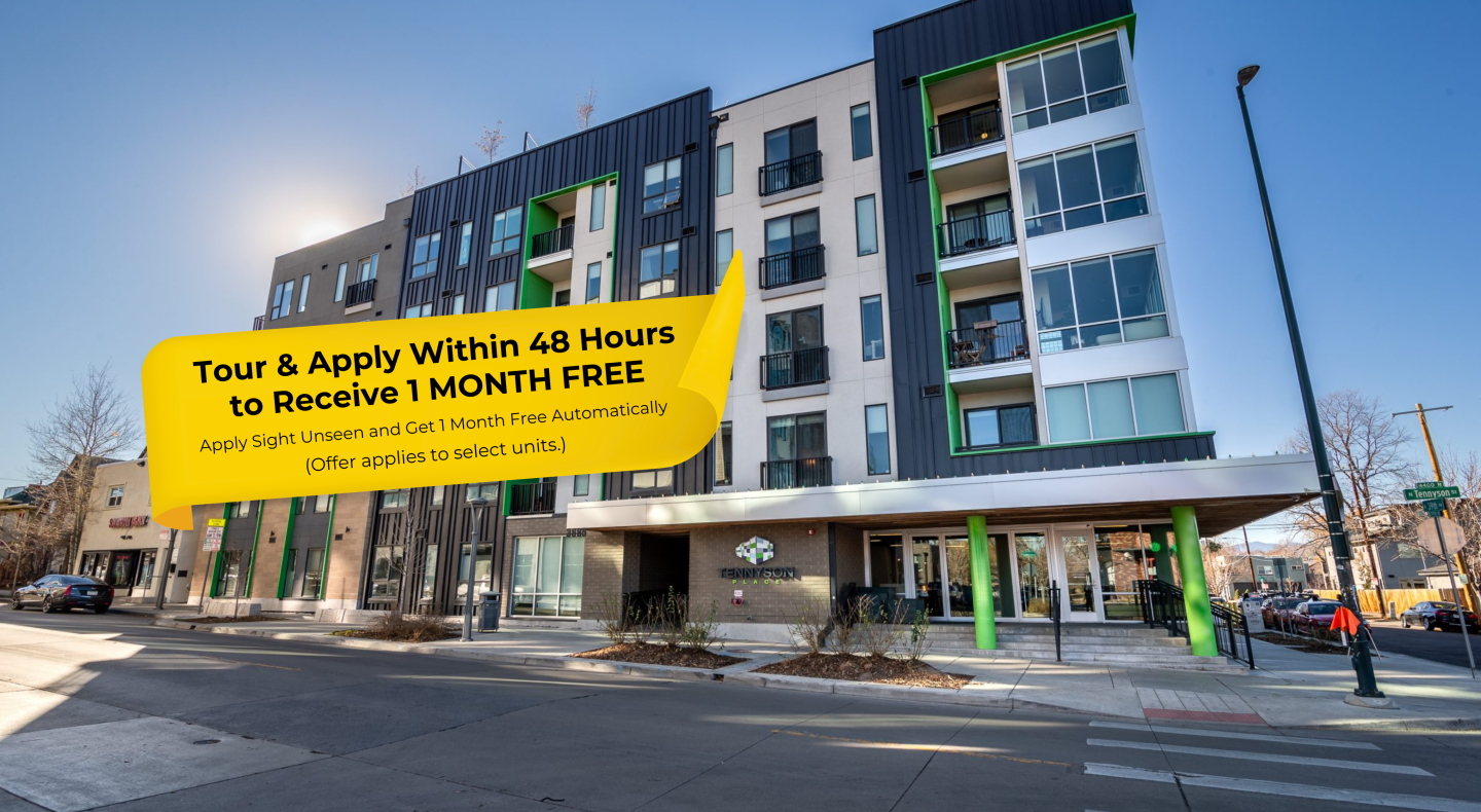 Tennyson Place is your destination for a mix of matchless luxuries that will fuel your life and feed your soul. Reach for the stars on the roof top deck where you can savour unobstructed views of the Rocky Mountains and take advantage of two grills, a fire pit, comfy seating, and cornhole, making it the perfect place to entertain friends and neighbors. You don't have to go far to enjoy the rich culture of Colorado. Our community clubhouse offers a rotating art installation wall featuring the talent of local artists. Pub-style shuffleboard, giant Scrabble, and an oversized TV with a full cable package also make the clubhouse the perfect hangout whether you are hosting the yearly Super Bowl party or catching up on your favorite TV series with friends. At Tennyson Place, next level living can be yours with the click of a button. Take advantage of other conveniences like a bike repair shop, 24-hour access fitness center, and our on-site guest room.Our community is situated at the gateway to Tennyson Street - a hub for things to do in Denver. A destination for locals and visitors alike, our street is humming with parks, shops, restaurants and live music venues. Surrounded by unique architecture, Tennyson Place features secured access and dedicated off-street parking for residents and guests. Careful thought went into the selection of the amenities that would best complement the modern design and central location of Tennyson Place. These unique amenities make it more convenient to bike to work, walk your dog and recharge your battery. Everything is walkable - you can cook at home, dine out, grab a cocktail or catch a show sans Uber, Lyft, Taxi or pedicab. All of our units come standard with high-end finishes and fixtures. First and second floor units feature polished concrete floors. Schedule your tour today! 2022-LE-0019764