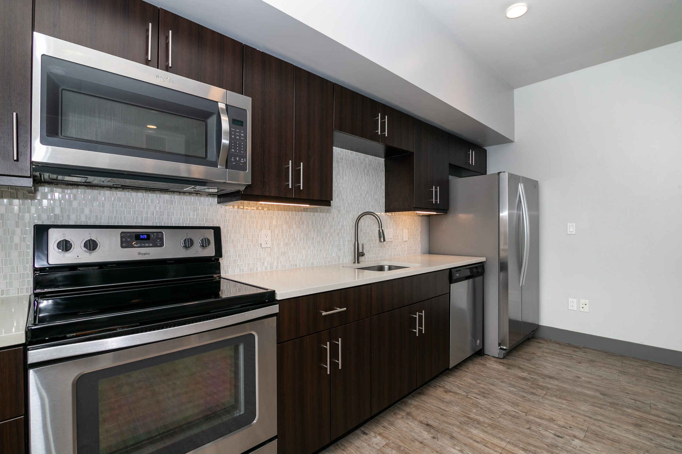 - Modern Kitchens with Designer Hardware and Backsplash