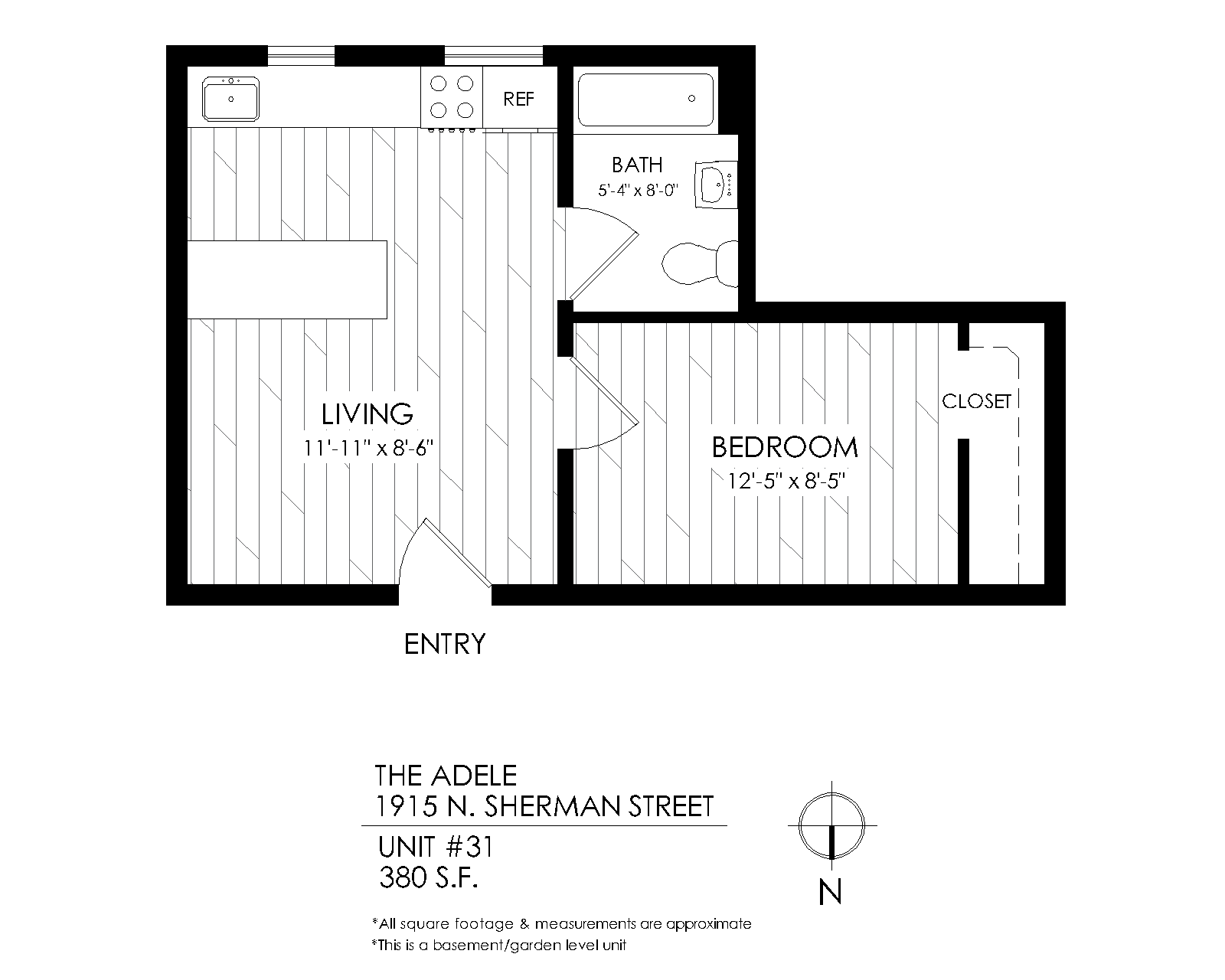 1 Bath 380 sqft.
