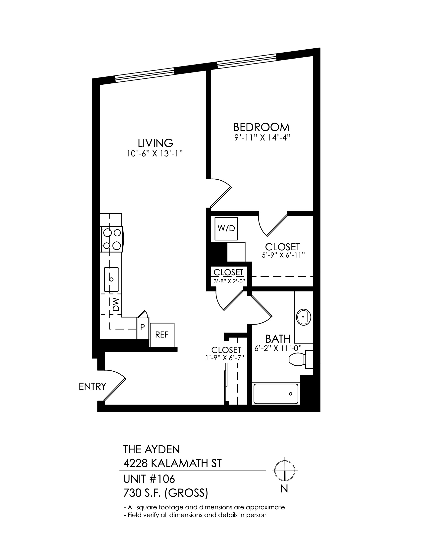 1 Bath 730 sqft.