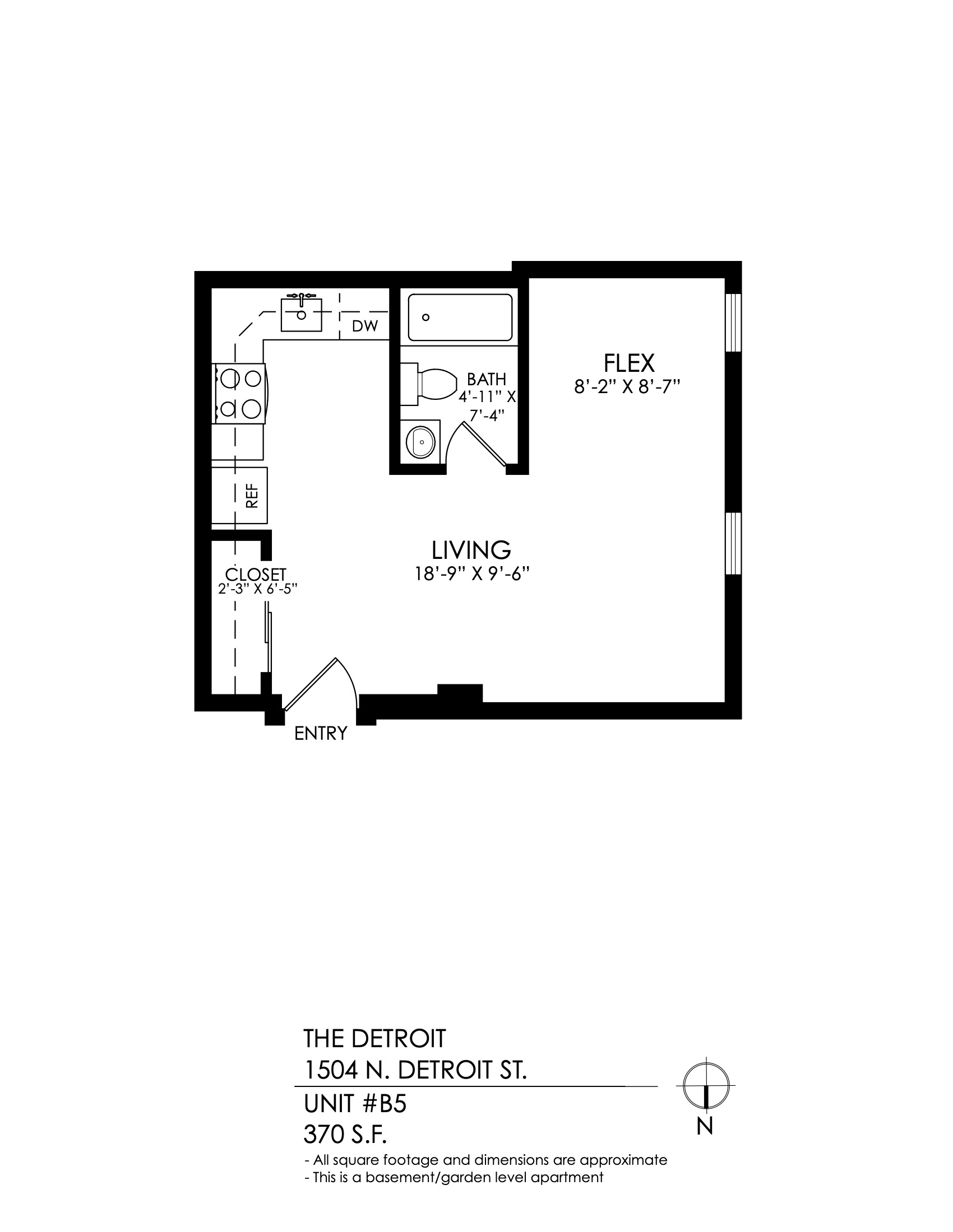 1 Bath 385 sqft.