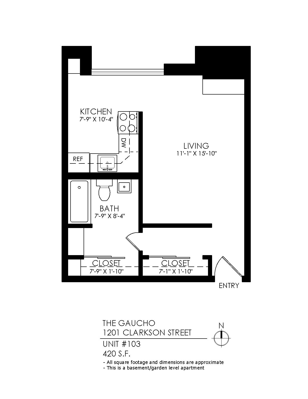 1 Bath 730 sqft.