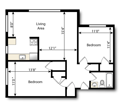 1 Bath 855 sqft.