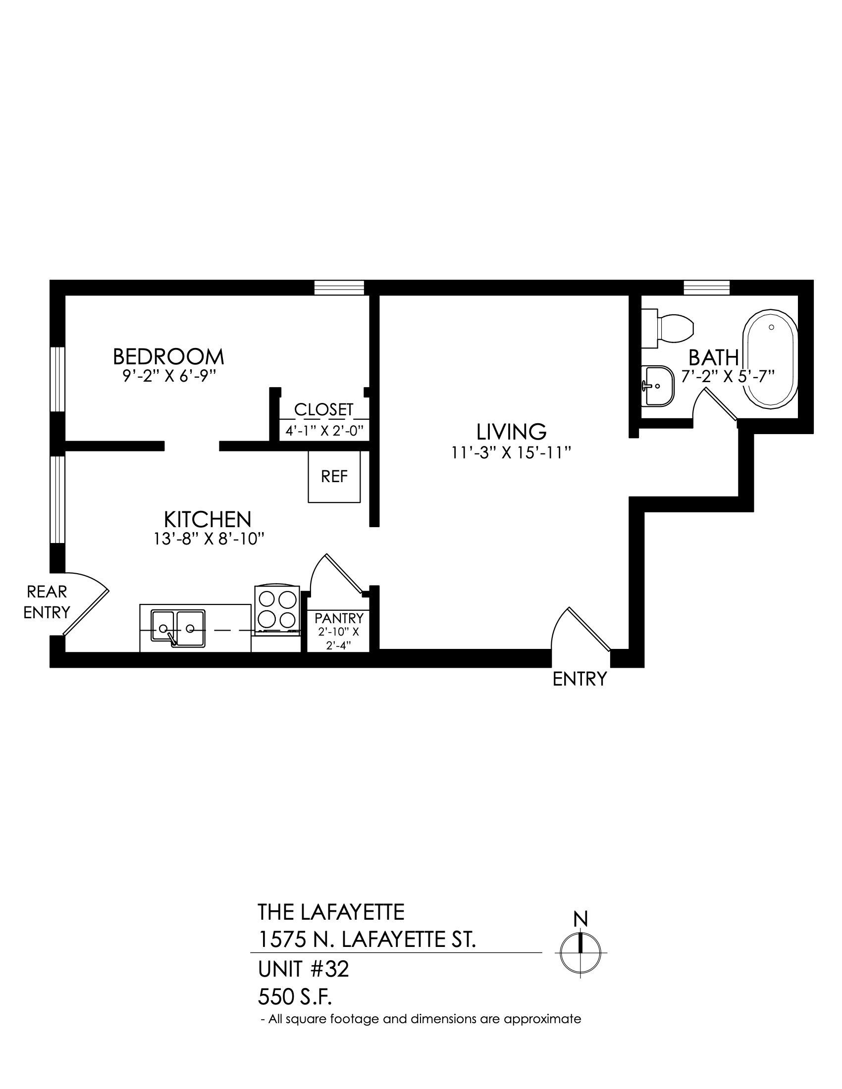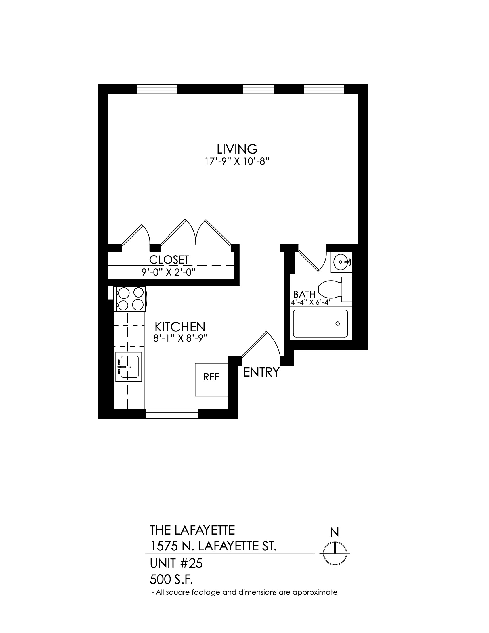 1 Bath 565 sqft.