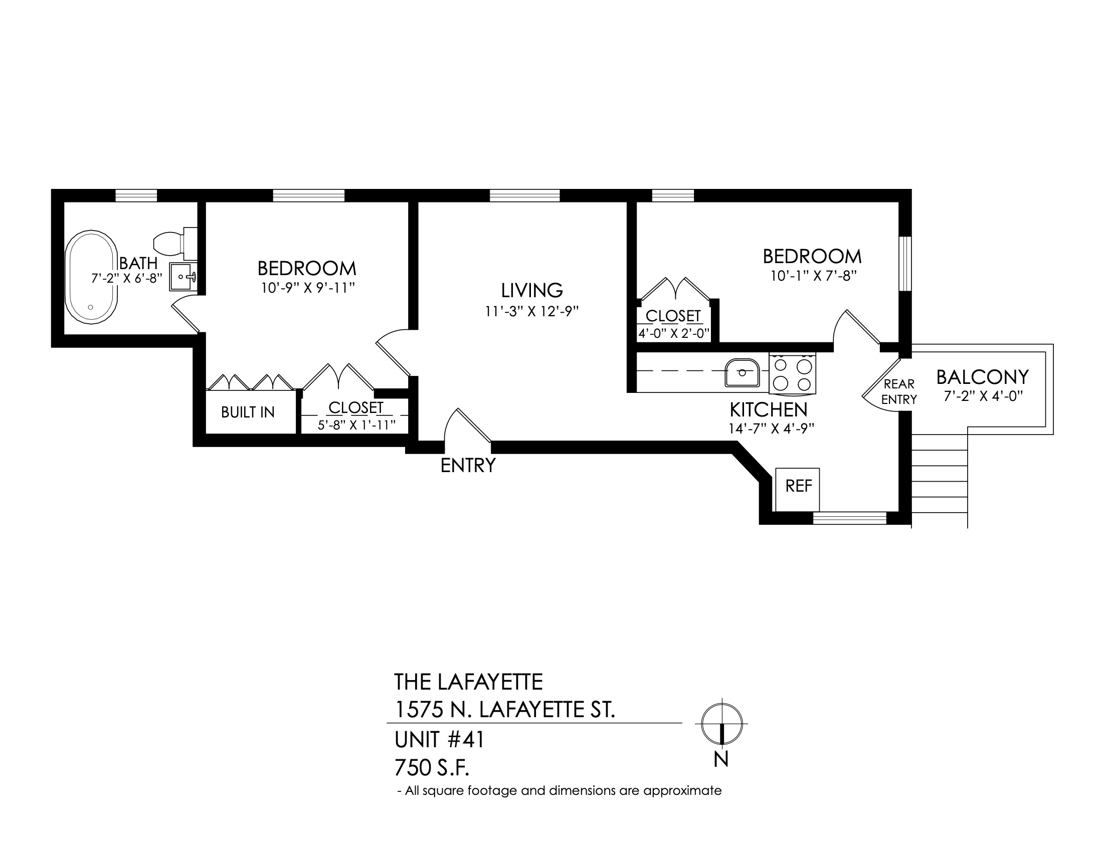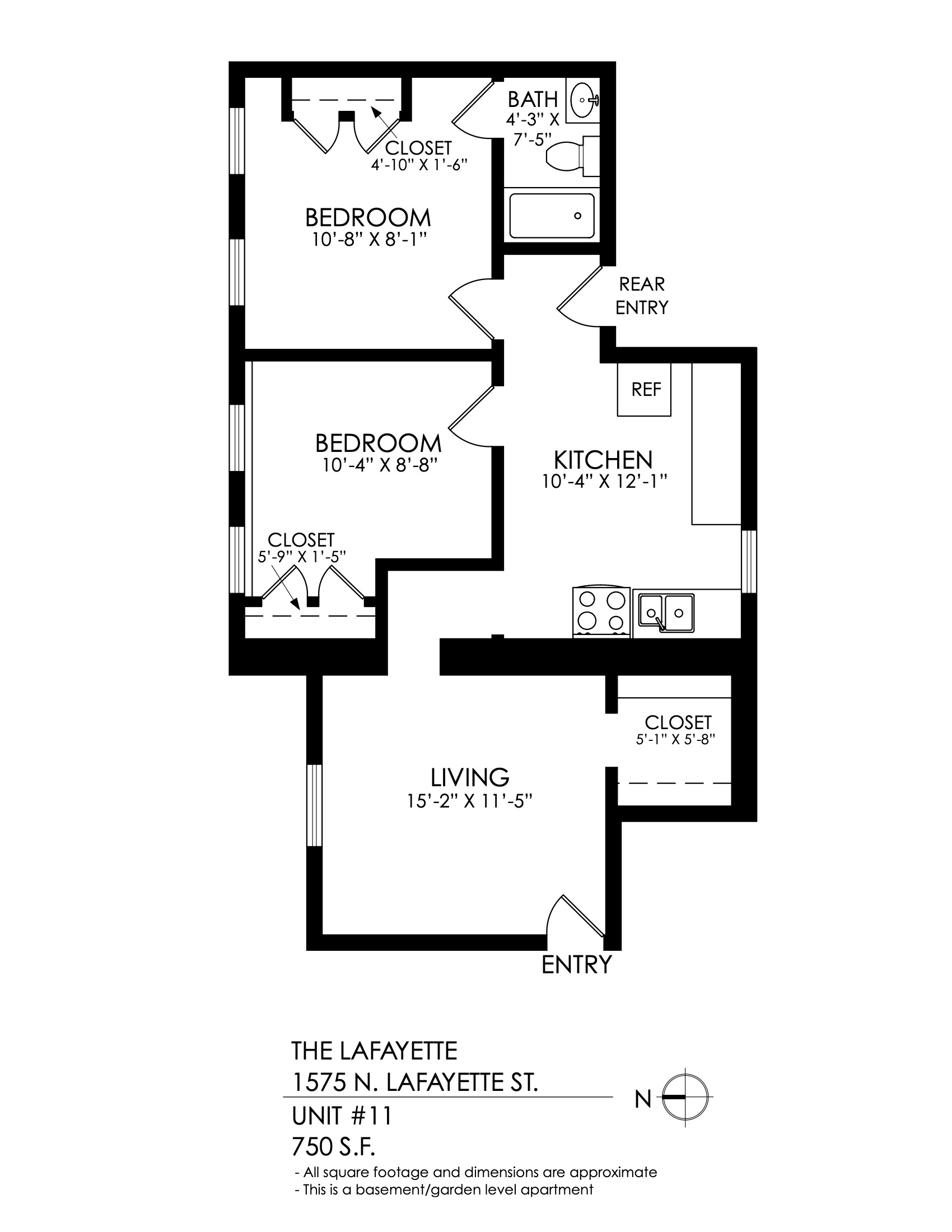 1 Bath 750 sqft.