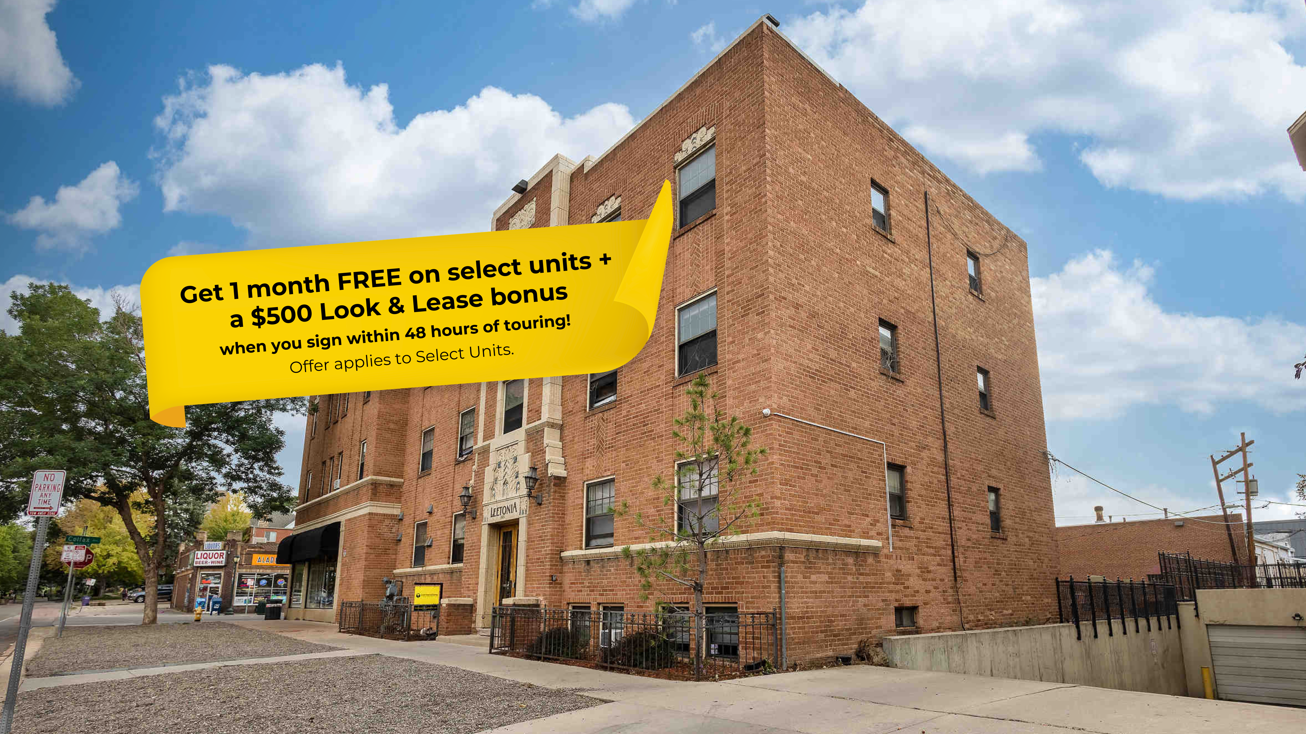 The Leetonia in the City Park neighborhood offers studio and one-bedroom apartments that combine modern updates with 1930s charm. Each home features hardwood floors, updated kitchens with stainless-steel appliances and gas ranges, and convenient on-site laundry. Just steps from City Park and the lively energy of Colfax Avenue, residents enjoy easy access to shops, dining, and entertainment, plus ground-floor retail and the cozy nonprofit cafe, SAME, for a uniquely connected living experience.