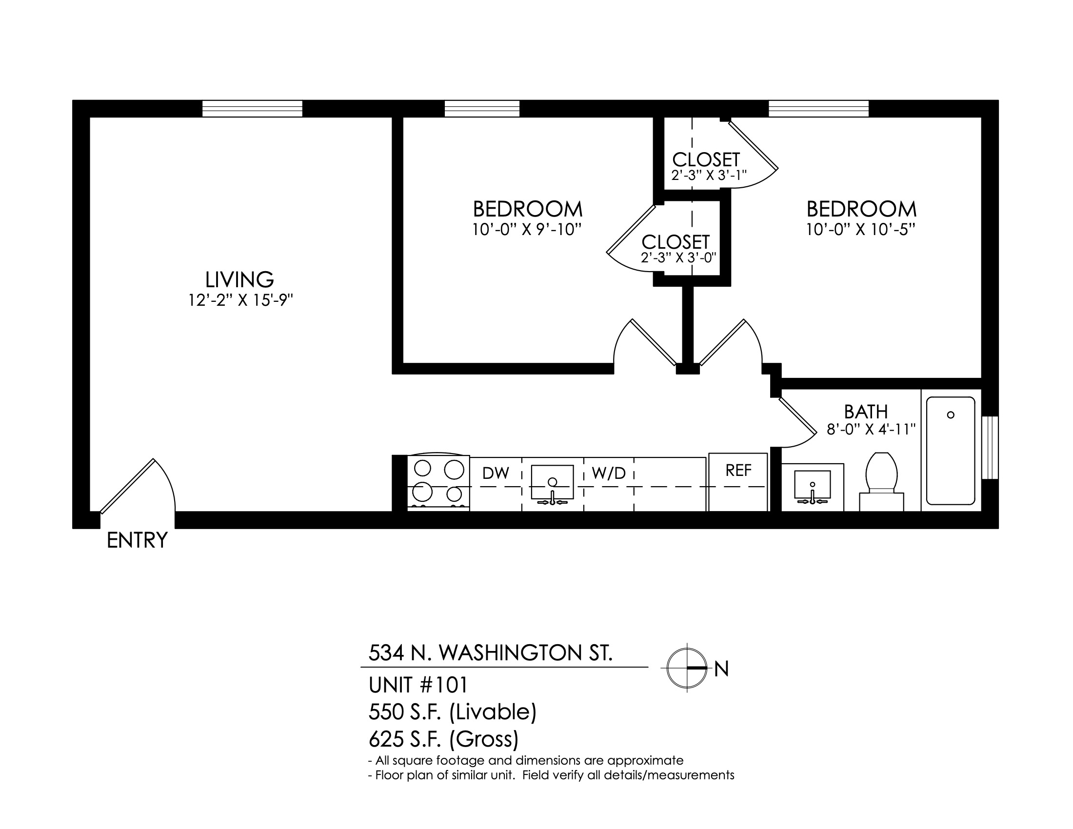 - 1-Bedroom Deposit: $800 Due at move-in (Refundable)