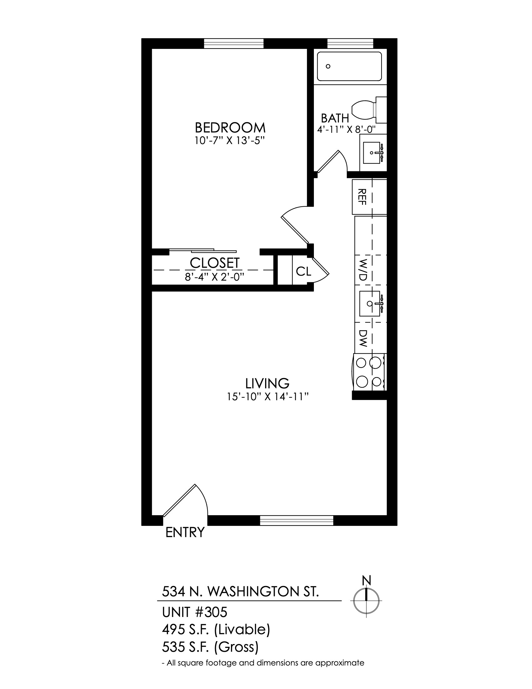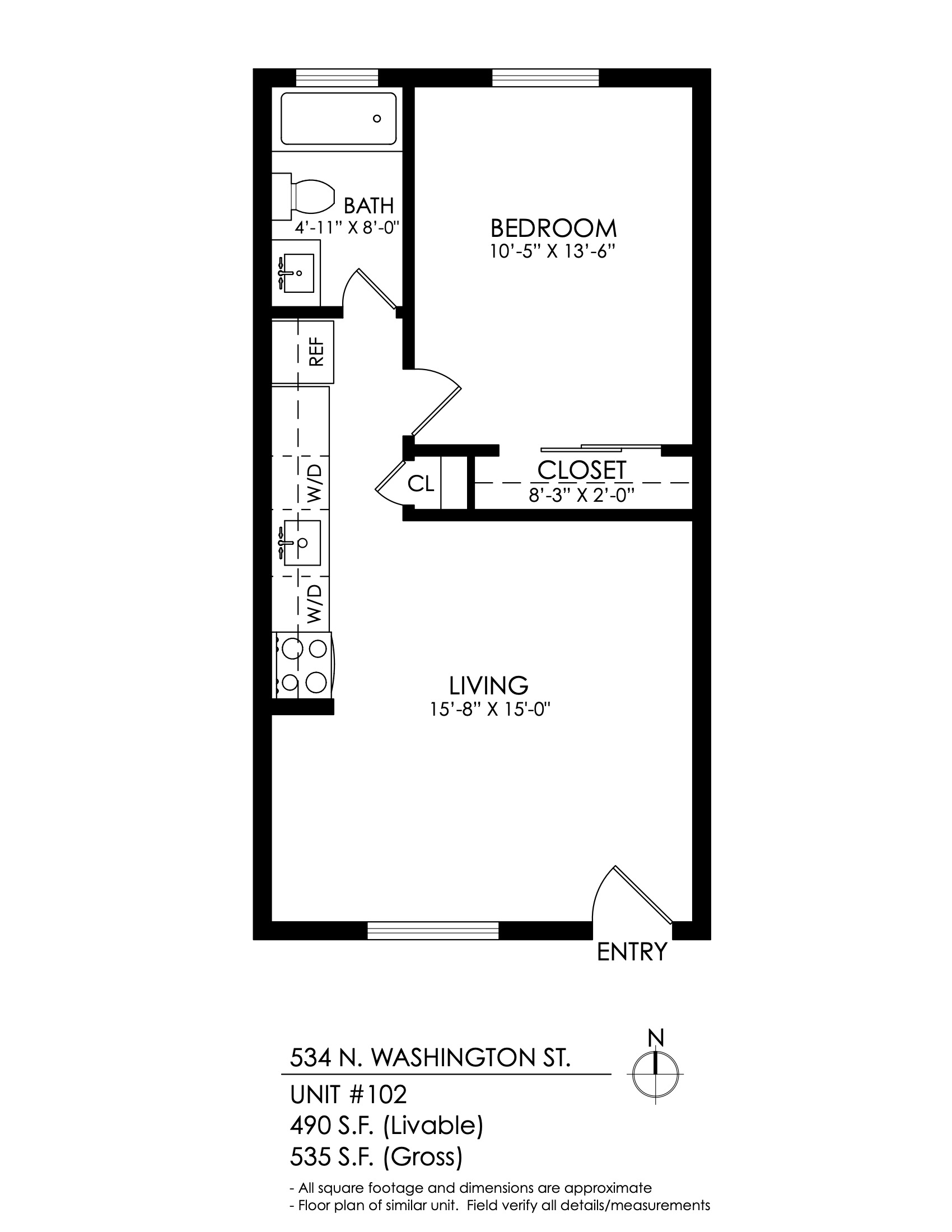 1 Bath 550 sqft.